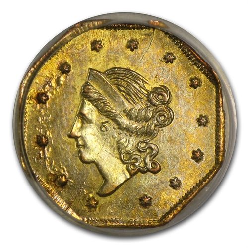 1860 BG-1102 Liberty Octagonal One Dollar Gold MS-63 PC **|**|** 1860 BG-1102 Liberty Octagonal One Dollar Gold MS-63 PCGS ; MSRP: $2900