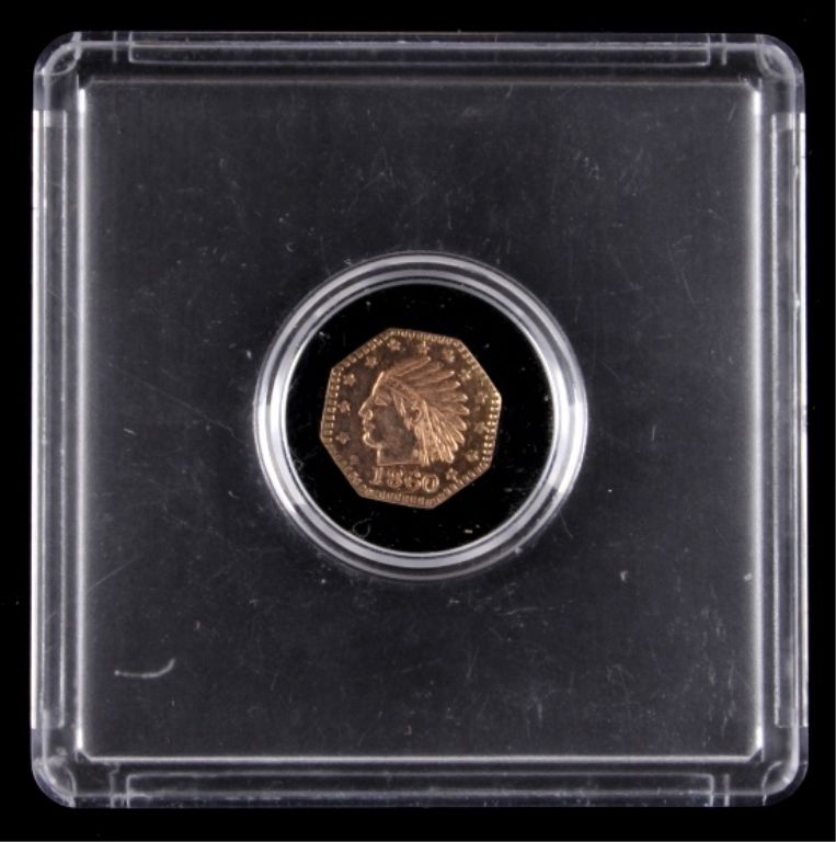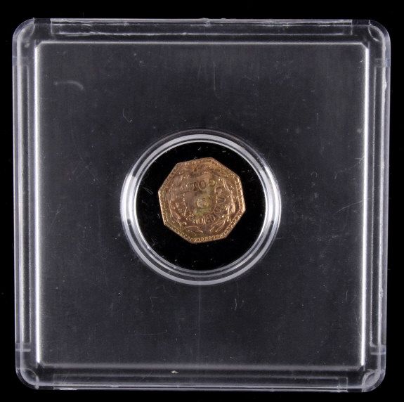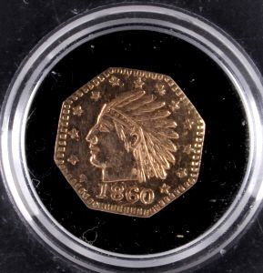 This is an original 1860 Solid Gold Coin from California. The coin is Hermetically Sealed and is a rare desirable piece.