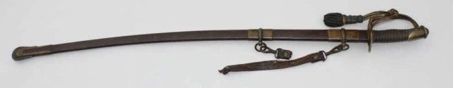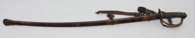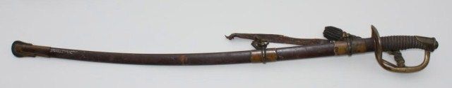 1860 Cavalry Officer’s pattern sabre with etched blade marked “W.H. Horstmann & Sons, Phila” with Kings Head, Solingen blade stamp. The sword is in very good condition with just normal use and natural aging withuntouched patina; very pleasing appearance; sword knot and partial hanger; blade shows fancy etching slight erosion and staining; blade is 35-1/2” with the sword 41-1/2” overall. From an old collection in Auburn, CA in the heart of the Gold Country. Est.: $1,250-$2,500.