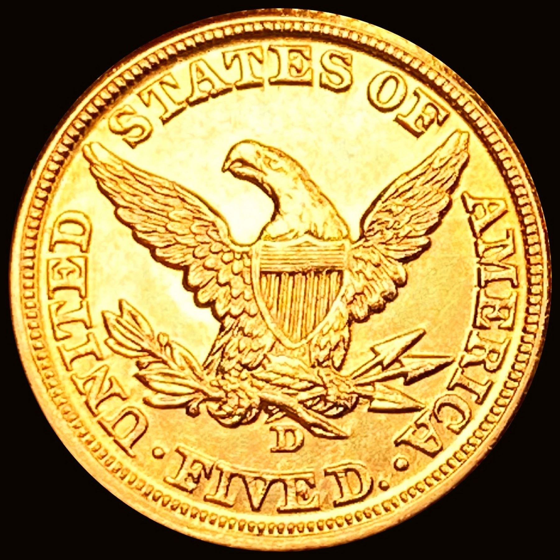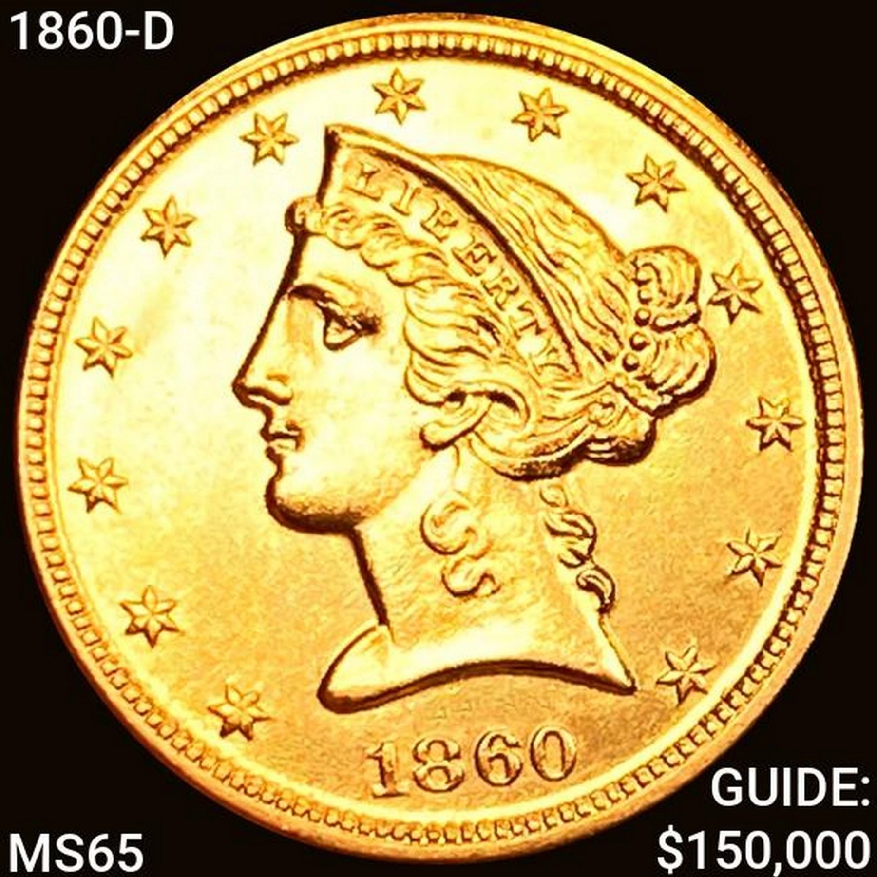 1860-D $5 Gold Half Eagle GEM BU