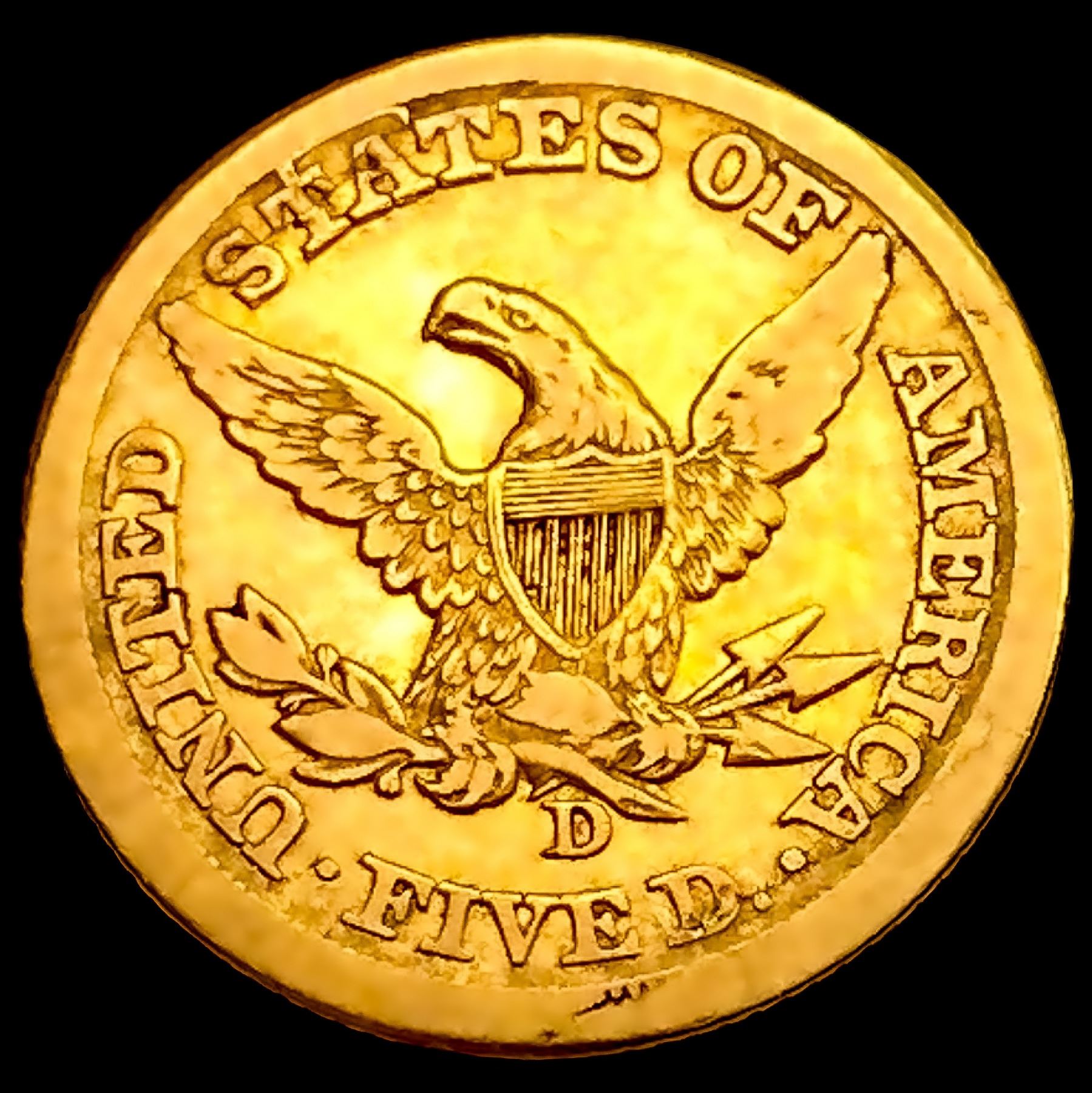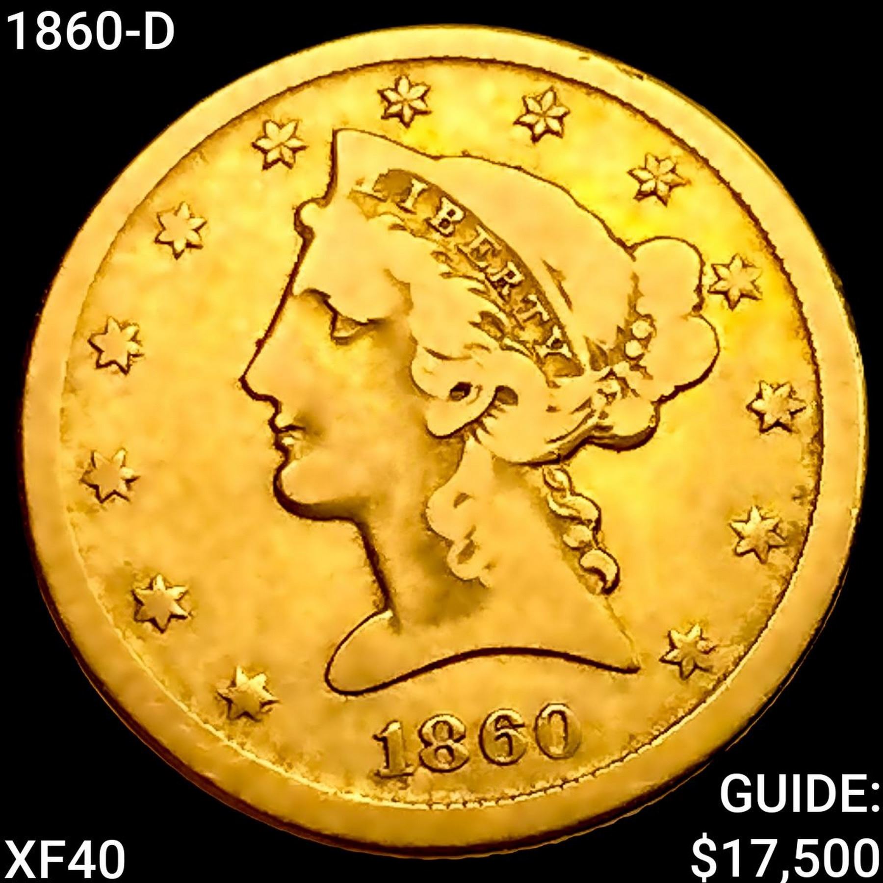 1860-D $5 Gold Half Eagle NEARLY UNCIRCULATED
