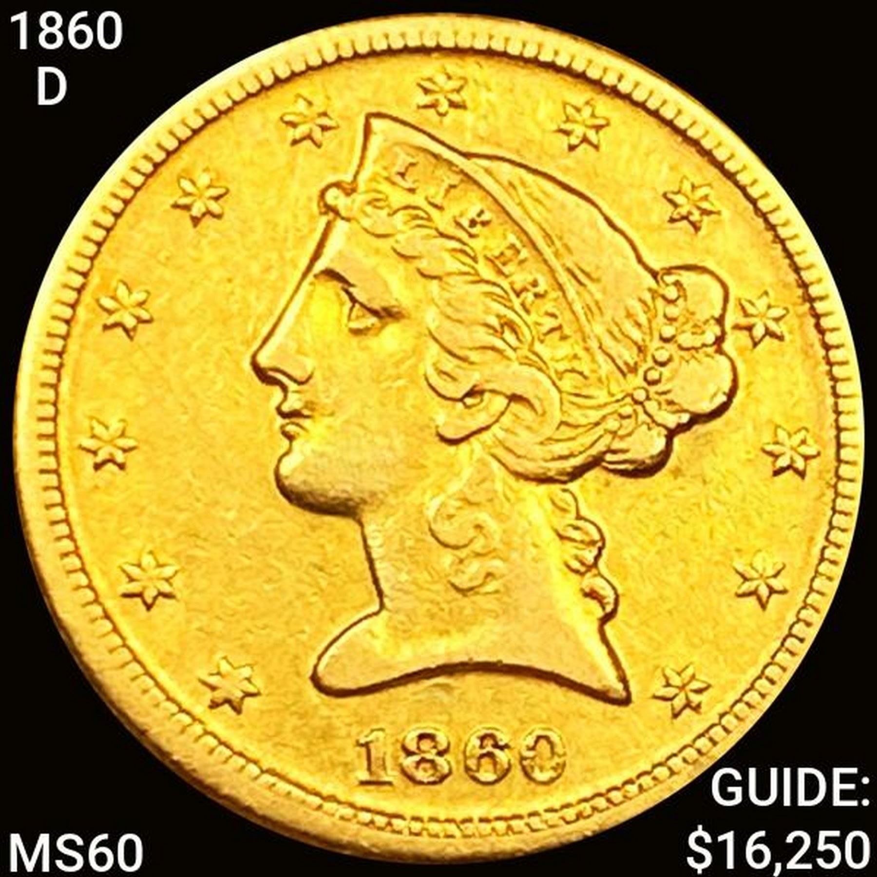 1860-D $5 Gold Half Eagle UNCIRCULATED