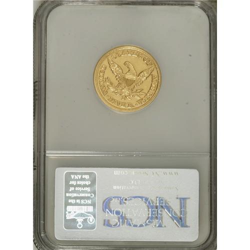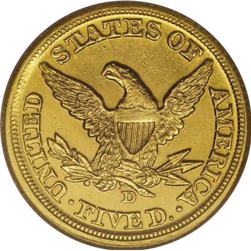 <B>1860-D $5 Medium D--Genuine--NCS.</B></I> Variety 38-FF. Ungraded by NCS, but we believe the piece has AU58 details, with only trivial wear noted on the highpoints and original mint luster clinging to the surfaces. A few light field abrasions noted under a loupe are consistent with a short stint in circulation. Rare so close to Mint State.<BR><BR><b>Shipping:</b> Coins & Currency (<a target="_blank" href="http://www.heritageauctions.com/common/shipping.php">view shipping information</a>)