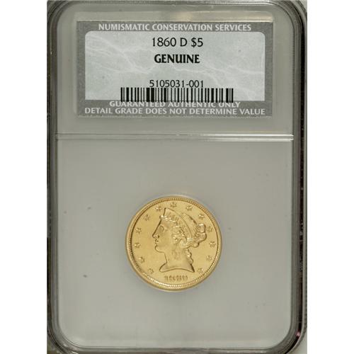 1860-D $5 Medium D--Genuine--NCS. Ungraded by NCS, but