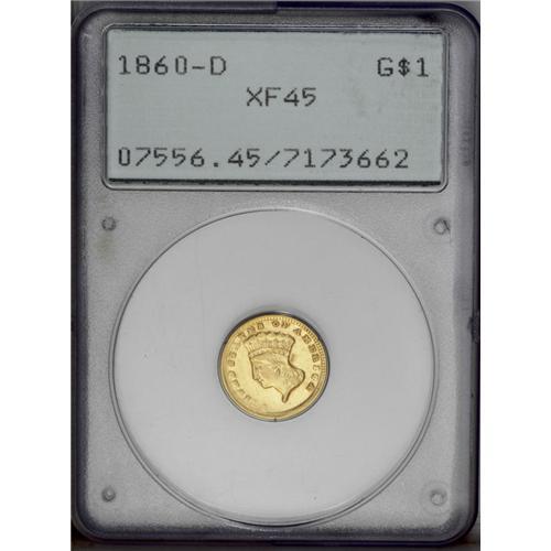 1860-D G$1 XF45 PCGS. Variety 12-P. A mere 1,566 piec