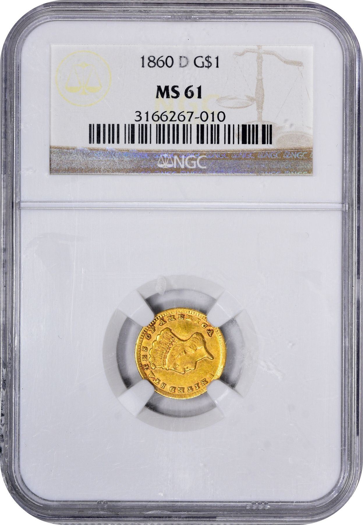 Title: 1860-D Gold $1. Winter 12-P; Only Die Pair. MS-61 NGC..