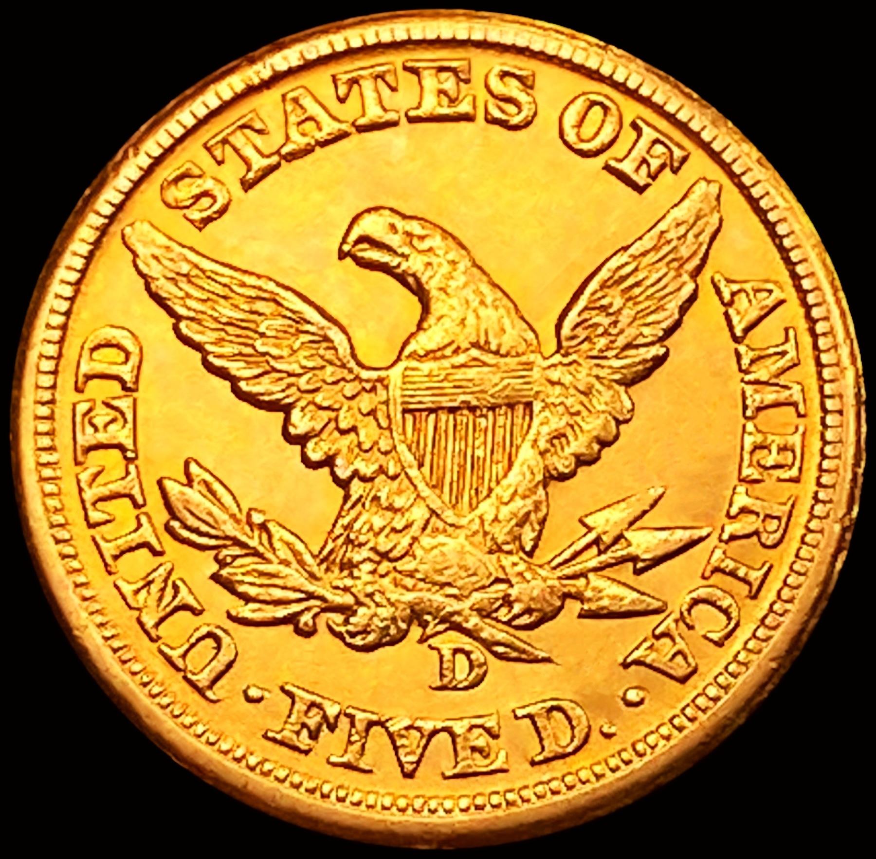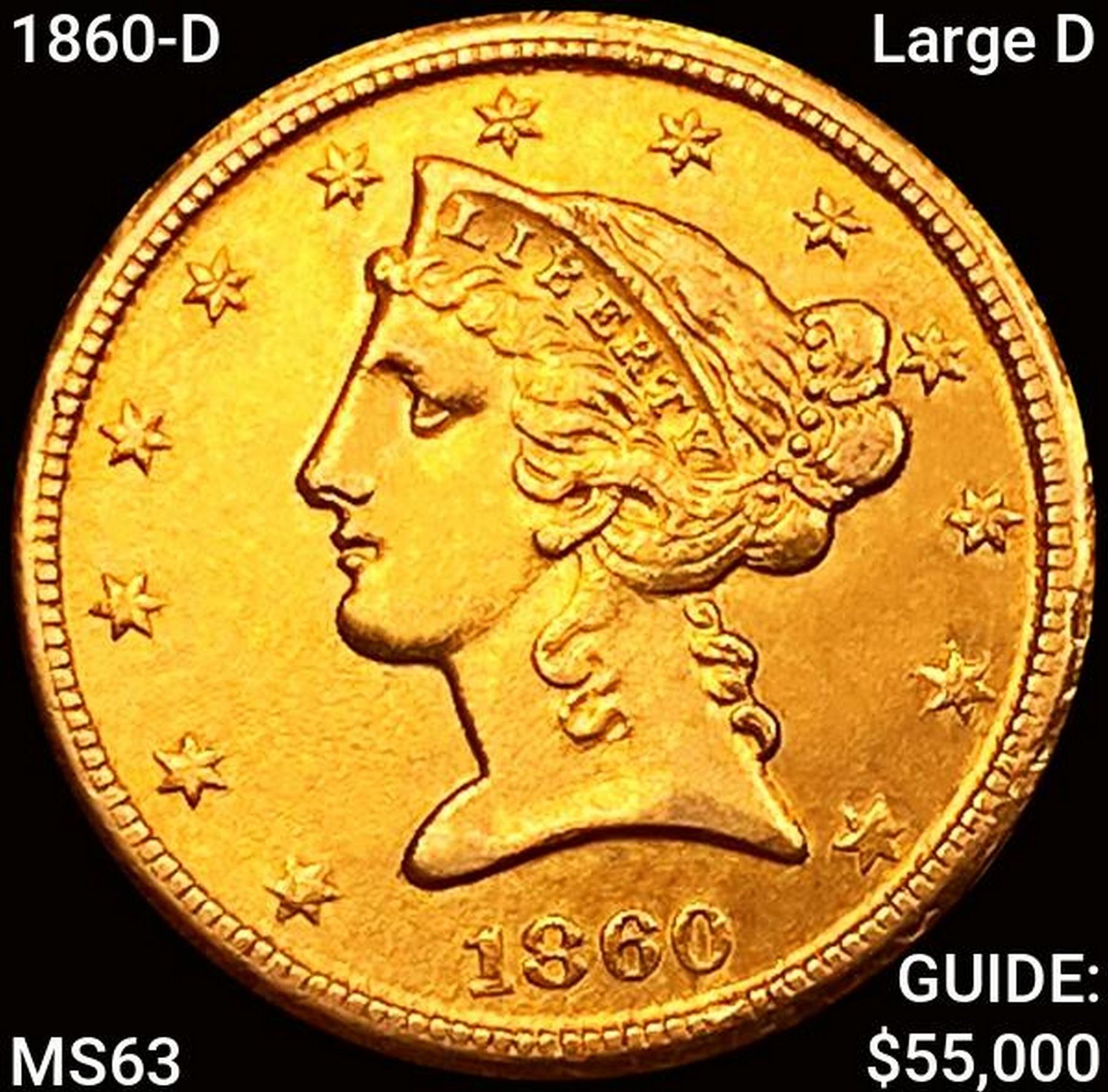 1860-D Large D $5 Gold Half Eagle CHOICE BU