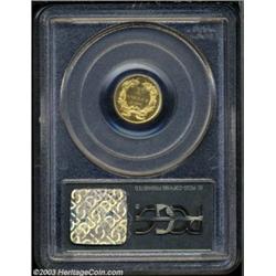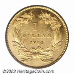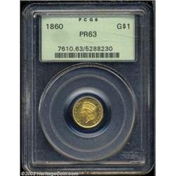 <table><tr><td><TABLE cellSpacing=0 cellPadding=0 width="100%" bgColor=#000000 border=0><TBODY> <TR><TD width="100%"><TABLE cellSpacing=1 cellPadding=3 width="100%" border=0><TBODY><TR><TD width="100%" bgColor=#79735c><FONT face=arial color=#ffffff size=3><B>Description</B> </FONT></TD></TR><TR><TD width="100%" bgColor=#ffffff><FONT face=arial size=2><B>1860 G$1 PR63 PCGS.</B></I> Mint records indicate that 154 proof gold dollars were struck in 1860, but it is estimated that today less than a third of that number are still extant and recognizable as proofs. This is a deeply mirrored example that shows pinpoint striking definition throughout. As with other proofs we have seen of this date, there is a patch of brilliance from excessive die polish just below Liberty's ear, and slight porosity is seen over the O in DOLLAR on the reverse. A few contact marks account for the grade, and there are a number of small lint marks on the reverse. A small planchet flake is seen in the left obverse field just in front of Liberty's neck. Population: 7 in 63, 18 finer (8/03). </FONT></TD></TR></TBODY></TABLE></TD></TR></TBODY></TABLE><BR><A name=PricesRealized></A><TABLE cellSpacing=0 cellPadding=0 width="100%" bgColor=#000000 border=0><TBODY><TR><TD width="100%"><TABLE cellSpacing=1 cellPadding=3 width="100%" border=0><TBODY><TR><TD width="100%" bgColor=#79735c><A name=PR><FONT face=arial color=#ffffff size=3><B>Previous Prices from Heritage Auctions</B> </FONT></A></TD></TR><TR><TD bgColor=#f6f6ed><TABLE cellSpacing=0 cellPadding=0 width="100%" border=1><TBODY><TR><TD align=middle width="33%"><B>Date</B></TD><TD align=middle width="33%"><B>Service</B></TD><TD align=middle width="33%"><B>Price</B></TD></TR><TR bgColor=whitesmoke><TD width="33%"><B>11/01/1997</B></TD><TD width="33%">PCGS</TD><TD width="33%">$7,480.00</TD></TR></TBODY></TABLE></TD></TR><TR><TD bgColor=#ffffff><FONT face=arial size=1 ?>PLEASE NOTE: All prices realized reflect the final hammer price PLUS the buyer's premium in auctions that charge a buyer's premium. Each item has a notation at the top of the listing indicating whether that lot included a buyer's premium. Example: A item that sells with a final hammer price of $100 and a 20% buyer's premium will display with a price realized of $120. All information listed is intended to be as accurate as possible, but errors are possible. Please use this guide carefully and inform us of any inaccuracies. </FONT></TD></TR></TBODY></TABLE></TD></TR></TBODY></TABLE><BR><TABLE cellSpacing=0 cellPadding=0 width="100%" bgColor=#000000 border=0><TBODY><TR><TD width="100%"><TABLE cellSpacing=1 cellPadding=3 width="100%" border=0><TBODY><TR><TD width="100%" bgColor=#79735c colSpan=6><FONT face=arial color=#ffffff size=3><B>Price Guide*</B> </FONT></TD></TR><TR bgColor=#f6f6ed><TD align=middle><B>Grade</B> </TD><TD align=middle><B>Coin World<BR>(Trends)</B> </TD><TD align=middle><B>Numismedia<BR>Retail</B> </TD><TD align=middle><B>Numismedia<BR>Wholesale</B> </TD><TD align=middle><B>Coin<BR>Universe</B> </TD><TD align=middle><B>Heritage<BR>Value Index</B> </TD></TR><TR bgColor=#ffffff><TD align=middle>62</TD><TD align=right>---</TD><TD align=right>---</TD><TD align=right>$2,550.00</TD><TD align=right>$4,225.00</TD><TD align=right>$2,843.75</TD></TR><TR style="FONT-WEIGHT: bold" bgColor=#cccfdd><TD align=middle>63</TD><TD align=right>---</TD><TD align=right>---</TD><TD align=right>$3,650.00</TD><TD align=right>$5,200.00</TD><TD align=right>$3,395.00</TD></TR><TR bgColor=#ffffff><TD align=middle>64</TD><TD align=right>---</TD><TD align=right>---</TD><TD align=right>---</TD><TD align=right>$8,000.00</TD><TD align=right>$5,612.50</TD></TR><TR bgColor=#ffffff><TD colSpan=6><FONT size=1>*All information listed is intended to be as accurate as possible, but errors are possible. No item may be returned or refused based on this information which is provided as a service to our customers. You should contact each pricing source directly to determine the accuracy of this information. </FONT></TD></TR></TBODY></TABLE></TD></TR></TBODY></TABLE><BR><TABLE cellSpacing=0 cellPadding=0 width="100%" bgColor=#000000 border=0><TBODY><TR><TD width="100%"><TABLE cellSpacing=1 cellPadding=3 width="100%" border=0><TBODY><TR><TD width="100%" bgColor=#79735c><FONT face=arial color=#ffffff size=3><B>Population Guide</B> </FONT></TD></TR><TR bgColor=#ffffff><TD align=middle><!-- Begin Output of Population Grid--><TABLE cellSpacing=0 cellPadding=0 width="100%" border=0><TBODY><TR><TD vAlign=center><TABLE cellSpacing=0 width="100%" border=1 cellsadding="3"><TBODY><TR><TD vAlign=center><TABLE cellSpacing=0 cellPadding=3 width="100%" border=1><TBODY><TR><TD vAlign=center align=middle bgColor=#f0f1e8 colSpan=2 <CENTER><FONT face=Arial size=2><B>PCGS Pop </B></FONT><CENTER></CENTER></TD><TD vAlign=center align=middle bgColor=#f0f1e8 colSpan=2><CENTER><FONT face=Arial size=2><B>NGC Pop</B></CENTER></FONT></TD></TR><TR><TD vAlign=center><FONT face=Arial size=2>(63)</FONT> </TD><TD vAlign=center align=right><FONT face=Arial size=2>7</FONT> </TD><TD vAlign=center><FONT face=Arial size=2>(63)</FONT> </TD><TD vAlign=center align=right><FONT face=Arial size=2>1</FONT> </TD></TR><TR><TD vAlign=center><FONT face=Arial size=2>(>63)</FONT> </TD><TD vAlign=center align=right><FONT face=Arial size=2>17</FONT> </TD><TD vAlign=center><FONT face=Arial size=2>(>63)</FONT> </TD><TD vAlign=center align=right><FONT face=Arial size=2>1</FONT> </TD></TR></TBODY></TABLE></TD></TR></TBODY></TABLE></TD></TR></TBODY></TABLE><!-- End Output of Population Grid--></TD></TR></TBODY></TABLE></TD></TR></TBODY></TABLE><BR><TABLE cellSpacing=0 cellPadding=0 width="100%" bgColor=#000000 border=0><TBODY><TR> Important notice: Heritage usually auctions material at the rate of 200-250 lots per hour. On some occasions eBay Live bid software or the Internet may not be able to keep up with the pace of the auction. We recommend placing a realistic absentee bid now as insuranc
