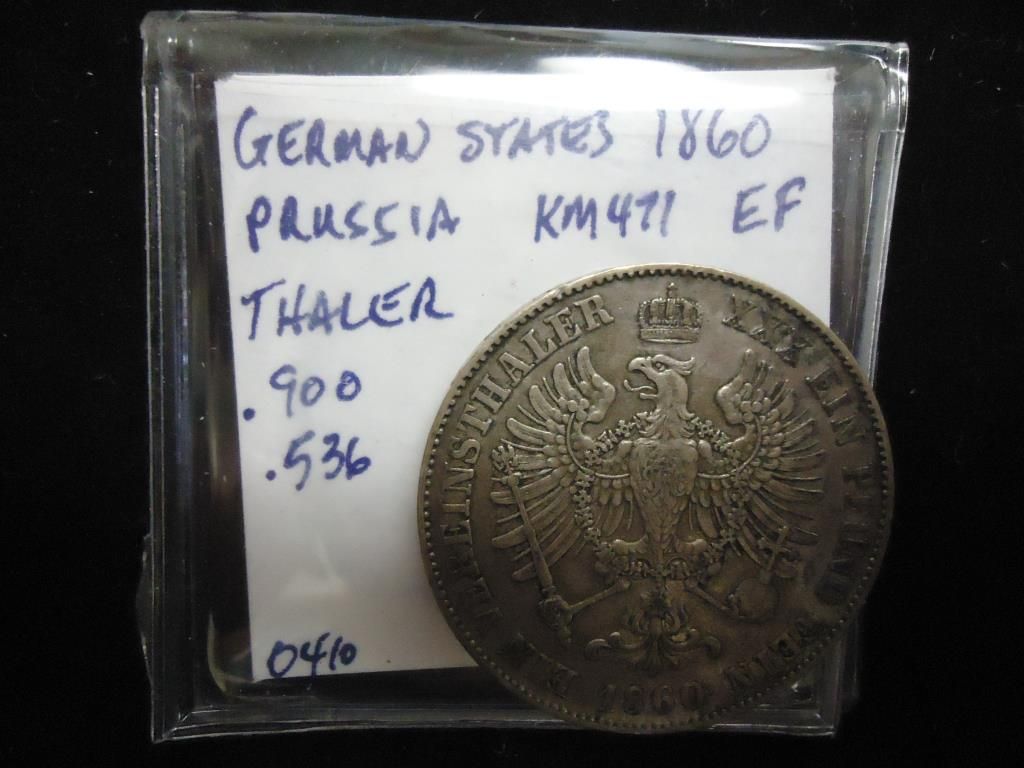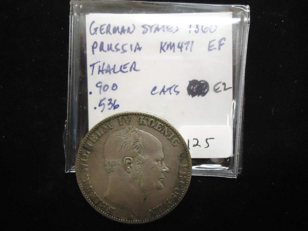 1860 GERMAN STATES PRUSSIA SILVER THALER XF
