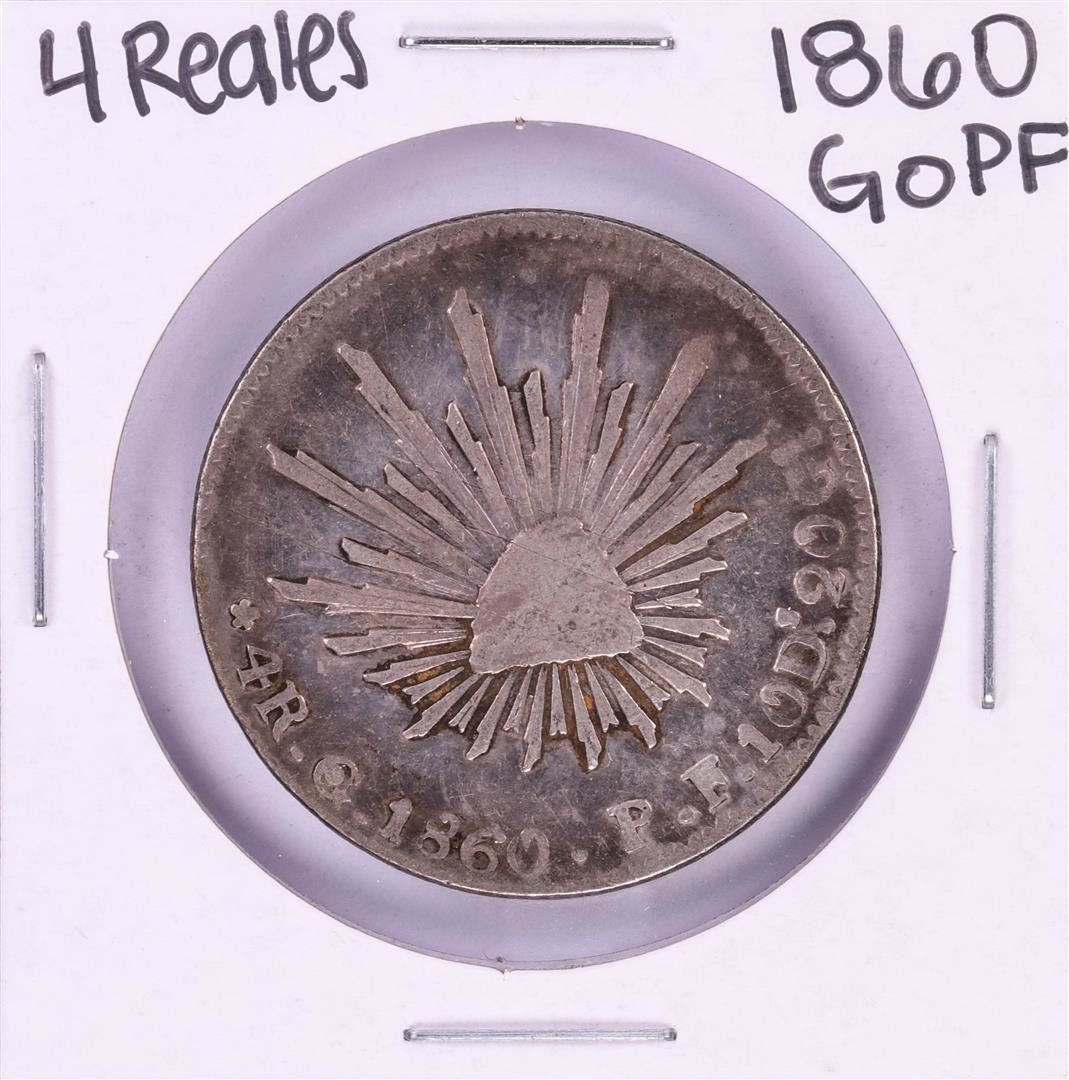 One 1860 GoPF Mexico 4 Reales Silver Coin.