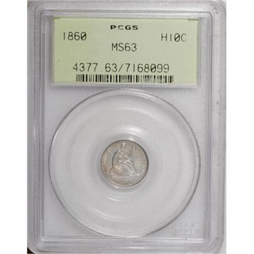 <B>1860 H10C MS63 PCGS.</B></I> V-3a, Doubled Reverse. PCGS Population (79/236). NGC Census: (67/295). Mintage: 799,000. Numismedia Wsl. Price for NGC/PCGS coin in MS63: $200. (#4377)<BR><BR><B>Coin Engraver:</B> Christian Gobrecht<BR><BR><b>Shipping:</b> Coins & Currency (<a target="_blank" href="http://www.heritageauctions.com/common/shipping.php">view shipping information</a>)