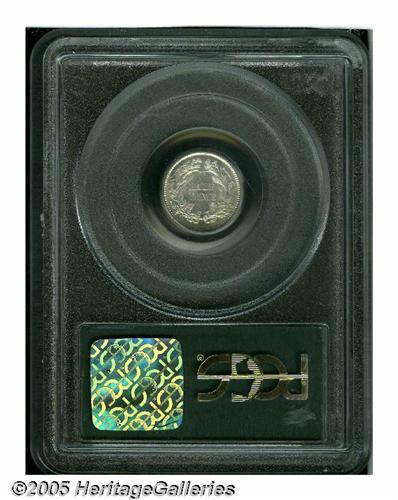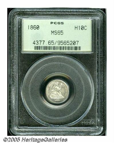 <B>1860<H10C> MS65 PCGS.</B></I> A wisp or two of faint light tan color visits otherwise brilliant surfaces, and the design elements are well impressed throughout. A couple of trivial marks on Liberty's cheek are mentioned for accuracy. Population: 49 in 65, 72 finer (6/05).