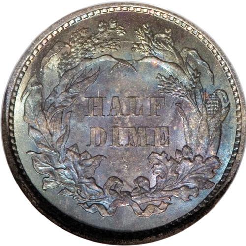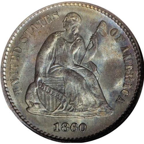 1860 H10C MS67 NGC. Mint-green, ocean-blue, jade, and