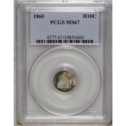 1860 H10C MS67 PCGS. Highly lustrous, near-pristine su