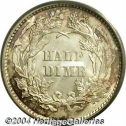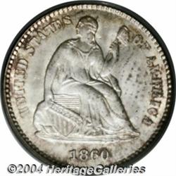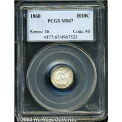 <B>1860<H10C> MS67 PCGS.</B></I> Lustrous surfaces are adorned with russet color around the borders. Sharply struck, with no apparent blemishes. Population: 29 in 67, 2 finer (7/04). <BR><BR><B>Important notice:</B> Heritage usually auctions material at the rate of 200-250 lots per hour. On some occasions eBay Live bid software or the Internet may not be able to keep up with the pace of the auction. We recommend placing a realistic absentee bid now as insurance to avoid disappointment. Occasionally the auctioneer may eliminate or reject an eBay Live bid, and the auctioneer may also reopen a lot after the close of the eBay live bidding (usually because we missed an audience bid), and may reject your bid even if it shows you as the winning bidder. By bidding via eBay Live, you agree that Heritage may award the lot to another bidder at its sole discretion under the circumstances described above or any other reasonable circumstances. Since eBay bids are not shown to us until we open the lot on the floor, we treat those bids just like floor bids. In most cases the floor responds before the eBay bid is presented to us, due to Internet lag time, so for consistency we have made it a policy that floor bids are always considered first over tie eBay live bids. Also please note that all Heritage lots purchased through eBay Live carry a 20% Buyer's Premium. Please make sure you read the Terms and Conditions before you bid. </span></font></tr></table></td></tr></table>