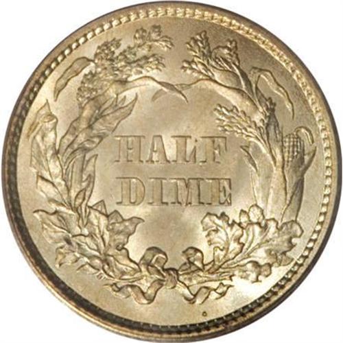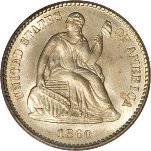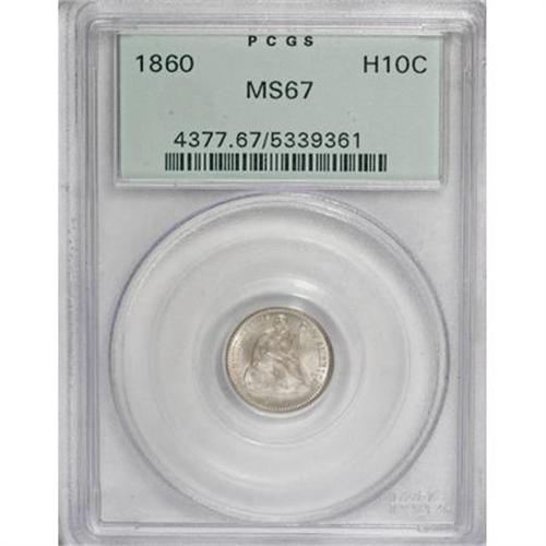 <B>1860 H10C MS67 PCGS.</B></I> The first year of the Legend Obverse half dime, with a mintage approaching 800,000 pieces. The current Superb Gem displays blazing luster exuding from light golden-gray surfaces. A well executed strike sharpens the design features, better than usually seen on this issue. The obverse reveals a couple of minute, inoffensive marks. Housed in a green-label holder. Population: 31 in 67, 2 finer (12/07).<BR><BR><B>Coin Engraver:</B> Christian Gobrecht<BR><BR><b>Shipping:</b> Coins & Currency (<a target="_blank" href="http://www.heritageauctions.com/common/shipping.php">view shipping information</a>)