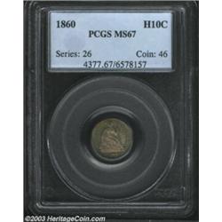 <TR><TD width="100%"><TABLE cellSpacing=1 cellPadding=3 width="100%" border=0><TBODY><TR><TD width="100%" bgColor=#79735c><FONT face=arial color=#ffffff size=3><B>Description</B> </FONT></TD></TR><TR><TD width="100%" bgColor=#ffffff><FONT face=arial size=2><B>1860 H10C MS67 PCGS.</B></I> Shimmering, nearly blemish-free surfaces, are attractively toned in concentric shades of reddish-golden and sea-green iridescence. The strike is well executed in all areas, although has no pretenses of being full. As an issue, 1860 Half Dimes are known to come nice and this superlative example certainly keeps with the tradition. Population: 26 in 67, 1 finer (4/03). </FONT></TD></TR></TBODY></TABLE></TD></TR></TBODY></TABLE><BR><A name=PricesRealized></A><TABLE cellSpacing=0 cellPadding=0 width="100%" bgColor=#000000 border=0><TBODY><TR><TD width="100%"><TABLE cellSpacing=1 cellPadding=3 width="100%" border=0><TBODY><TR><TD width="100%" bgColor=#79735c><A name=PR><FONT face=arial color=#ffffff size=3><B>Previous Prices from Heritage Auctions</B> </FONT></A></TD></TR><TR><TD bgColor=#f6f6ed><TABLE cellSpacing=0 cellPadding=0 width="100%" border=1><TBODY><TR><TD align=middle width="33%"><B>Date</B></TD><TD align=middle width="33%"><B>Service</B></TD><TD align=middle width="33%"><B>Price</B></TD></TR><TR bgColor=whitesmoke><TD width="33%"><B>03/21/2002</B></TD><TD width="33%">PCGS</TD><TD width="33%">$2,530.00</TD></TR><TR bgColor=whitesmoke><TD width="33%"><B>07/30/2002</B></TD><TD width="33%">NGC</TD><TD width="33%">$1,897.50</TD></TR><TR bgColor=whitesmoke><TD width="33%"><B>08/14/1995</B></TD><TD width="33%">NGC</TD><TD width="33%">$2,310.00</TD></TR></TBODY></TABLE></TD></TR><TR><TD bgColor=#ffffff><FONT face=arial size=1 ?>PLEASE NOTE: All prices realized reflect the final hammer price PLUS the buyer's premium in auctions that charge a buyer's premium. Each item has a notation at the top of the listing indicating whether that lot included a buyer's premium. Example: A item that sells with a final hammer price of $100 and a 20% buyer's premium will display with a price realized of $120. All information listed is intended to be as accurate as possible, but errors are possible. Please use this guide carefully and inform us of any inaccuracies. </FONT></TD></TR></TBODY></TABLE></TD></TR></TBODY></TABLE><BR><TABLE cellSpacing=0 cellPadding=0 width="100%" bgColor=#000000 border=0><TBODY><TR><TD width="100%"><TABLE cellSpacing=1 cellPadding=3 width="100%" border=0><TBODY><TR><TD width="100%" bgColor=#79735c colSpan=6><FONT face=arial color=#ffffff size=3><B>Price Guide*</B> </FONT></TD></TR><TR bgColor=#f6f6ed><TD align=middle><B>Grade</B> </TD><TD align=middle><B>Coin World<BR>(Trends)</B> </TD><TD align=middle><B>Numismedia<BR>Retail</B> </TD><TD align=middle><B>Numismedia<BR>Wholesale</B> </TD><TD align=middle><B>Coin<BR>Universe</B> </TD><TD align=middle><B>Heritage<BR>Value Index</B> </TD></TR><TR bgColor=#ffffff><TD align=middle>66</TD><TD align=right>---</TD><TD align=right>---</TD><TD align=right>$1,175.00</TD><TD align=right>$1,550.00</TD><TD align=right>$1,005.00</TD></TR><TR style="FONT-WEIGHT: bold" bgColor=#cccfdd><TD align=middle>67</TD><TD align=right>---</TD><TD align=right>---</TD><TD align=right>$2,250.00</TD><TD align=right>$3,500.00</TD><TD align=right>$2,450.00</TD></TR><TR bgColor=#ffffff><TD align=middle>68</TD><TD align=right>---</TD><TD align=right>---</TD><TD align=right>$8,335.00</TD><TD align=right>---</TD><TD align=right>---</TD></TR><TR bgColor=#ffffff><TD colSpan=6><FONT size=1>*All information listed is intended to be as accurate as possible, but errors are possible. No item may be returned or refused based on this information which is provided as a service to our customers. You should contact each pricing source directly to determine the accuracy of this information. </FONT></TD></TR></TBODY></TABLE></TD></TR></TBODY></TABLE><BR><TABLE cellSpacing=0 cellPadding=0 width="100%" bgColor=#000000 border=0><TBODY><TR><TD width="100%"><TABLE cellSpacing=1 cellPadding=3 width="100%" border=0><TBODY><TR><TD width="100%" bgColor=#79735c><FONT face=arial color=#ffffff size=3><B>Population Guide</B> </FONT></TD></TR><TR bgColor=#ffffff><TD align=middle><!-- Begin Output of Population Grid--><TABLE cellSpacing=0 cellPadding=0 width="100%" border=0><TBODY><TR><TD vAlign=center><TABLE cellSpacing=0 width="100%" border=1 cellsadding="3"><TBODY><TR><TD vAlign=center><TABLE cellSpacing=0 cellPadding=3 width="100%" border=1><TBODY><TR><TD vAlign=center align=middle bgColor=#f0f1e8 colSpan=2 <CENTER><FONT face=Arial size=2><B>PCGS Pop </B></FONT><CENTER></CENTER></TD><TD vAlign=center align=middle bgColor=#f0f1e8 colSpan=2><CENTER><FONT face=Arial size=2><B>NGC Pop</B></CENTER></FONT></TD></TR><TR><TD vAlign=center><FONT face=Arial size=2>(67)</FONT> </TD><TD vAlign=center align=right><FONT face=Arial size=2>26</FONT> </TD><TD vAlign=center><FONT face=Arial size=2>(67)</FONT> </TD><TD vAlign=center align=right><FONT face=Arial size=2>20</FONT> </TD></TR><TR><TD vAlign=center><FONT face=Arial size=2>(>67)</FONT> </TD><TD vAlign=center align=right><FONT face=Arial size=2>1</FONT> </TD><TD vAlign=center><FONT face=Arial size=2>(>67)</FONT> </TD><TD vAlign=center align=right><FONT face=Arial size=2>0</FONT> </TD></TR></TBODY></TABLE></TD></TR></TBODY></TABLE></TD></TR></TBODY></TABLE><!-- End Output of Population Grid--></TD></TR></TBODY></TABLE></TD></TR></TBODY></TABLE><BR><TABLE cellSpacing=0 cellPadding=0 width="100%" bgColor=#000000 border=0><TBODY><TR> Important notice: We expect to be auctioning lots at the rate of 200-250 per hour. On occasion eBay live bid software cannot keep up with the pace of the auctions where 4-5 lots per minute can hammer down, so we recommend that you place a realistic absentee bid now as insurance to avoid disappointment. Also please note that all Heritage/CAA lots purchased through eBay Live carry a 20% Buyer's Premium. Please make sure you read the Terms and Cond