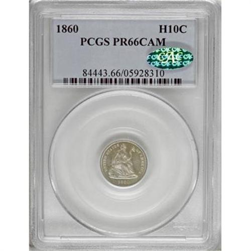 <B>1860 H10C PR66 Cameo PCGS. CAC.</B></I> Amazing contrast with subtle hints of gold and blue-green patina against the gleaming silver-white fields and the elegantly frosted devices. An impressively preserved survivor from this antebellum proof issue. Population: 1 in 66 Cameo, 2 finer (11/07).<BR><BR><b>Shipping:</b> Coins & Currency (<a target="_blank" href="http://www.heritageauctions.com/common/shipping.php">view shipping information</a>)