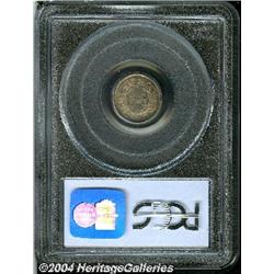 <B>1860<H10C> Transitional MS64 PCGS.</B></I> Judd-267. The "Transitional" half dimes of 1860 were produced as "trade bait" by Mint Director James Ross Snowden, ostensibly for trades to benefit the Mint Cabinet Collection. It is generally accepted that 100 pieces were struck, all as business strikes, whereas the 1859 pieces are all proofs. What makes these coins distinctive is the lack of an issuing authority, leading collectors over the years to label these as a "Coin Without a Country." This is a lovely, lustrous example that has touches of golden-brown patina over each side. Weakly struck, as usually seen, there are no objectionable marks on either side. Population: 16 in 64, 18 finer (9/04). <BR><BR><B>Important notice:</B> Heritage usually auctions material at the rate of 200-250 lots per hour. On some occasions eBay Live bid software or the Internet may not be able to keep up with the pace of the auction. We recommend placing a realistic absentee bid now as insurance to avoid disappointment. Occasionally the auctioneer may eliminate or reject an eBay Live bid, and the auctioneer may also reopen a lot after the close of the eBay live bidding (usually because we missed an audience bid), and may reject your bid even if it shows you as the winning bidder. By bidding via eBay Live, you agree that Heritage may award the lot to another bidder at its sole discretion under the circumstances described above or any other reasonable circumstances. Since eBay bids are not shown to us until we open the lot on the floor, we treat those bids just like floor bids. In most cases the floor responds before the eBay bid is presented to us, due to Internet lag time, so for consistency we have made it a policy that floor bids are always considered first over tie eBay live bids. Also please note that all Heritage lots purchased through eBay Live carry a 20% Buyer's Premium. Please make sure you read the Terms and Conditions before you bid.