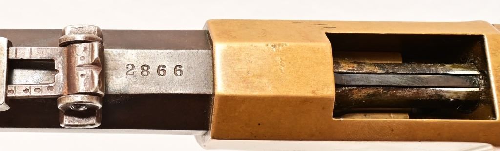 S/N 2866 (1863). 24" barrel .44 caliber, flip-up rear sight, sling mounts on stock and barrel.
