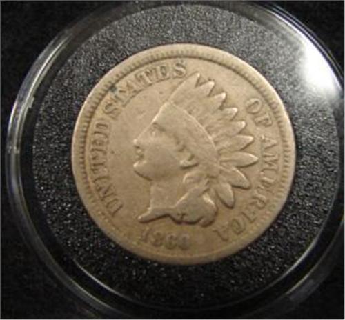 1860 U.S. INDIAN HEAD CENT. Coin is in circular case.