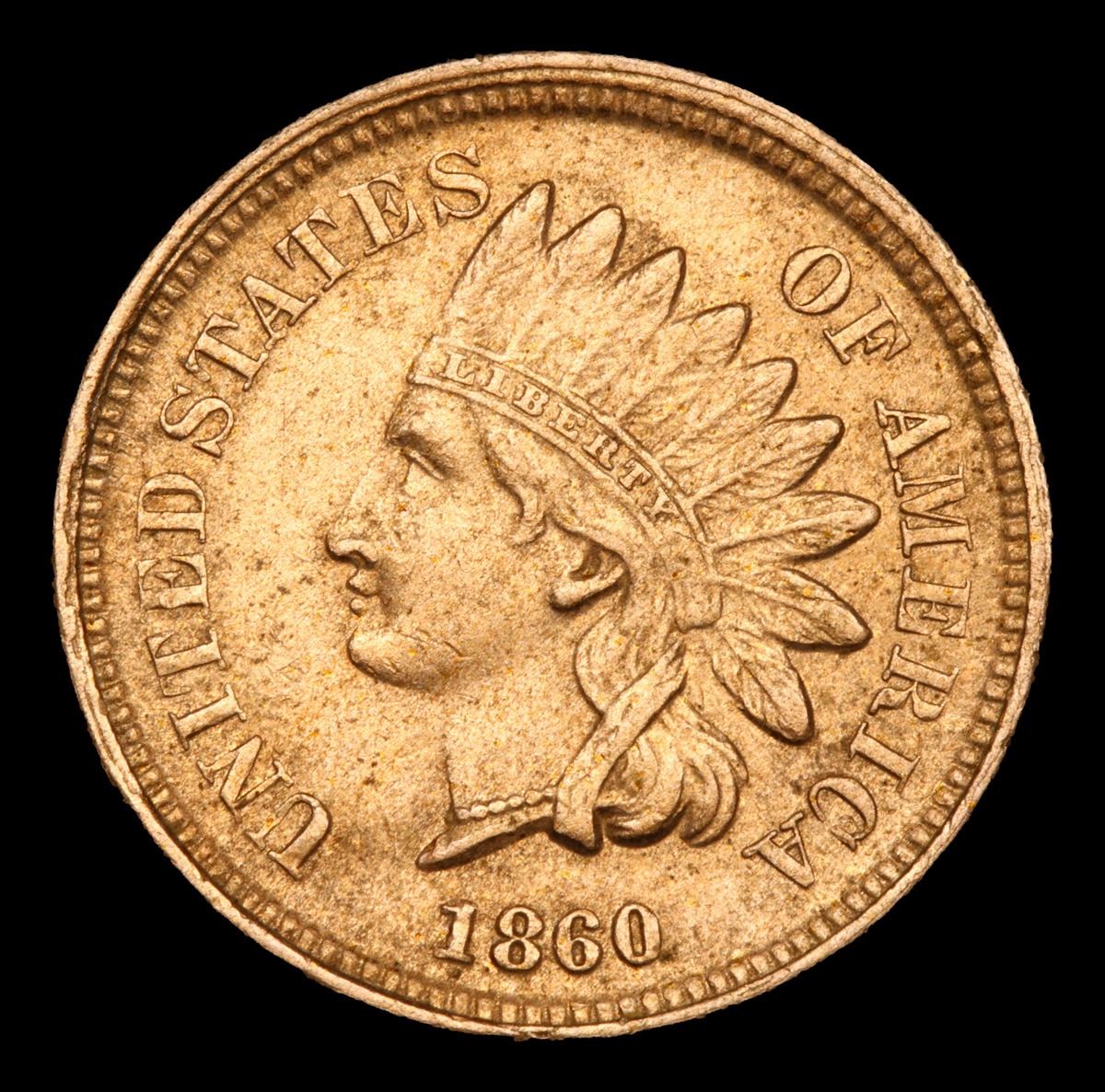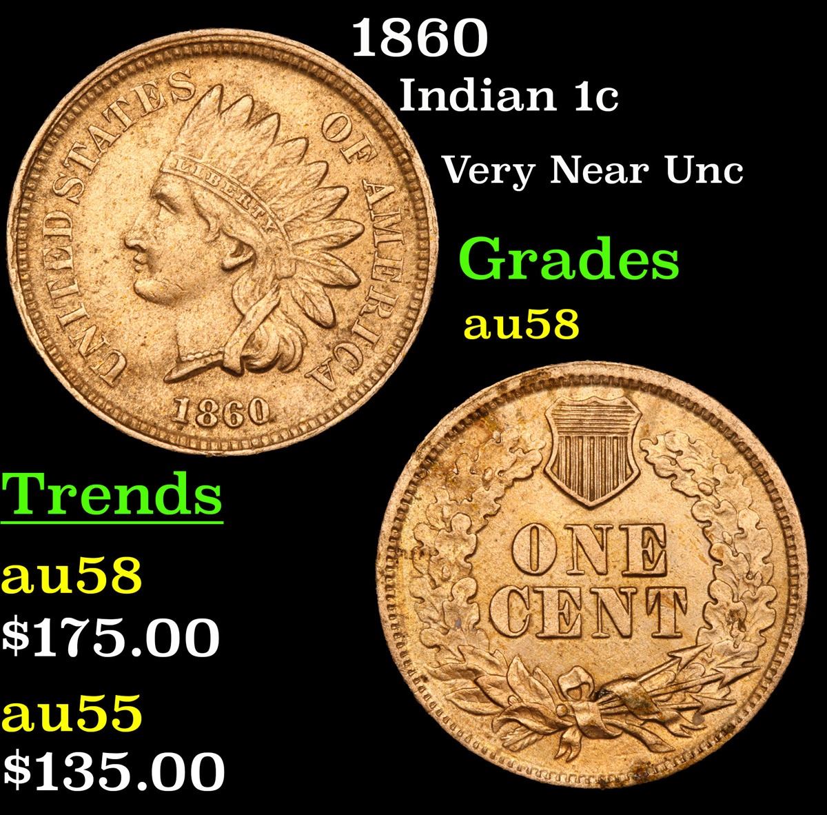 1860 Indian Cent 1c Grades Choice AU/BU Slider.