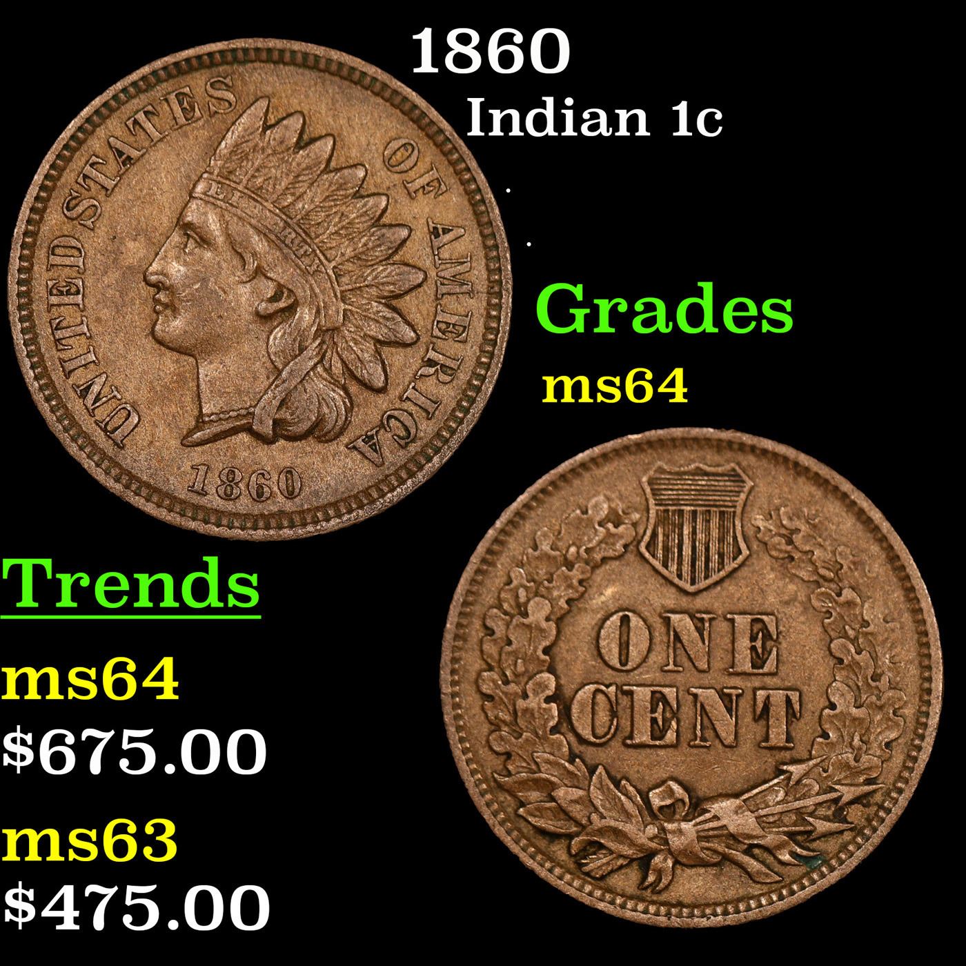1860 Indian Cent 1c Grades Choice Unc.