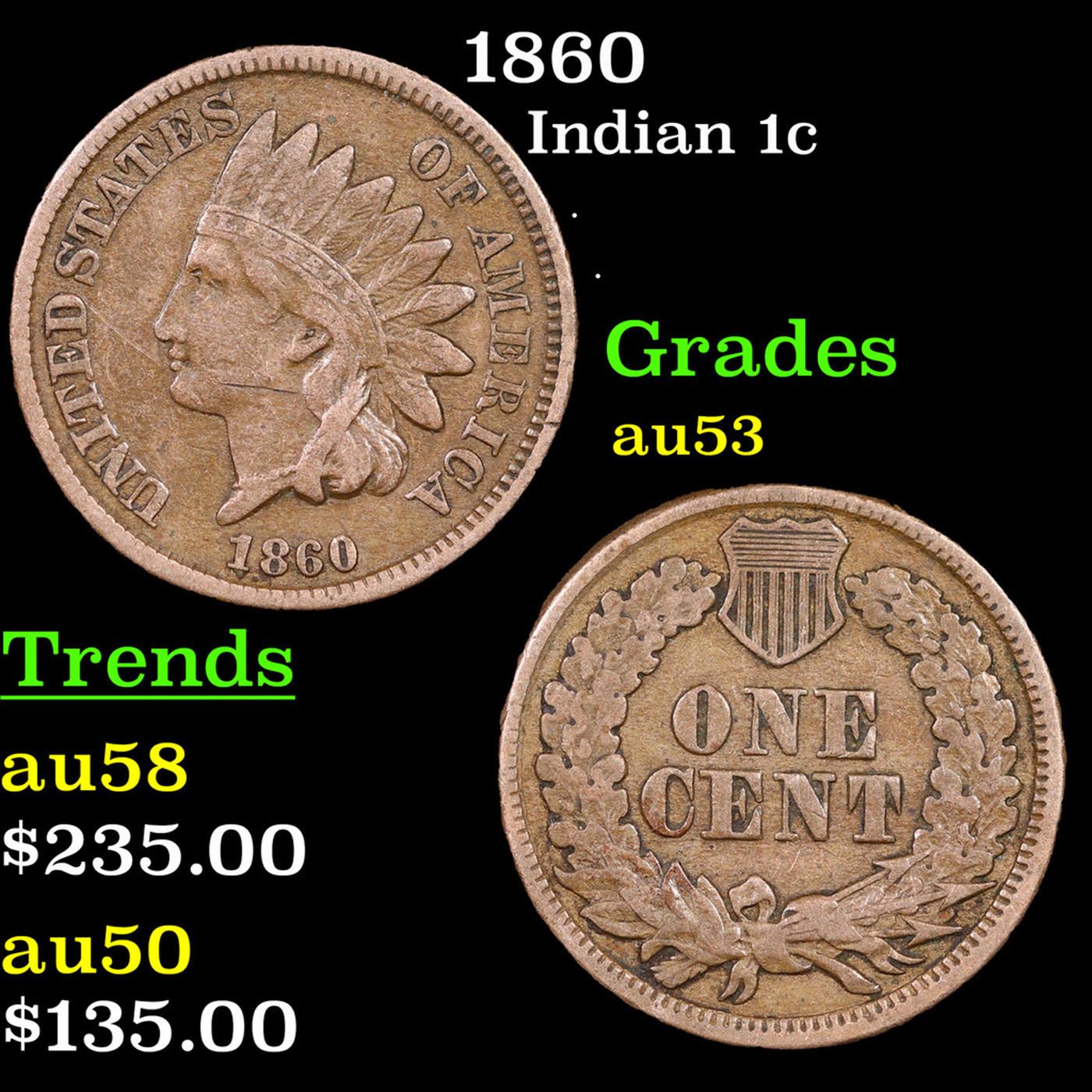 1860 Indian Cent 1c Grades Select AU.