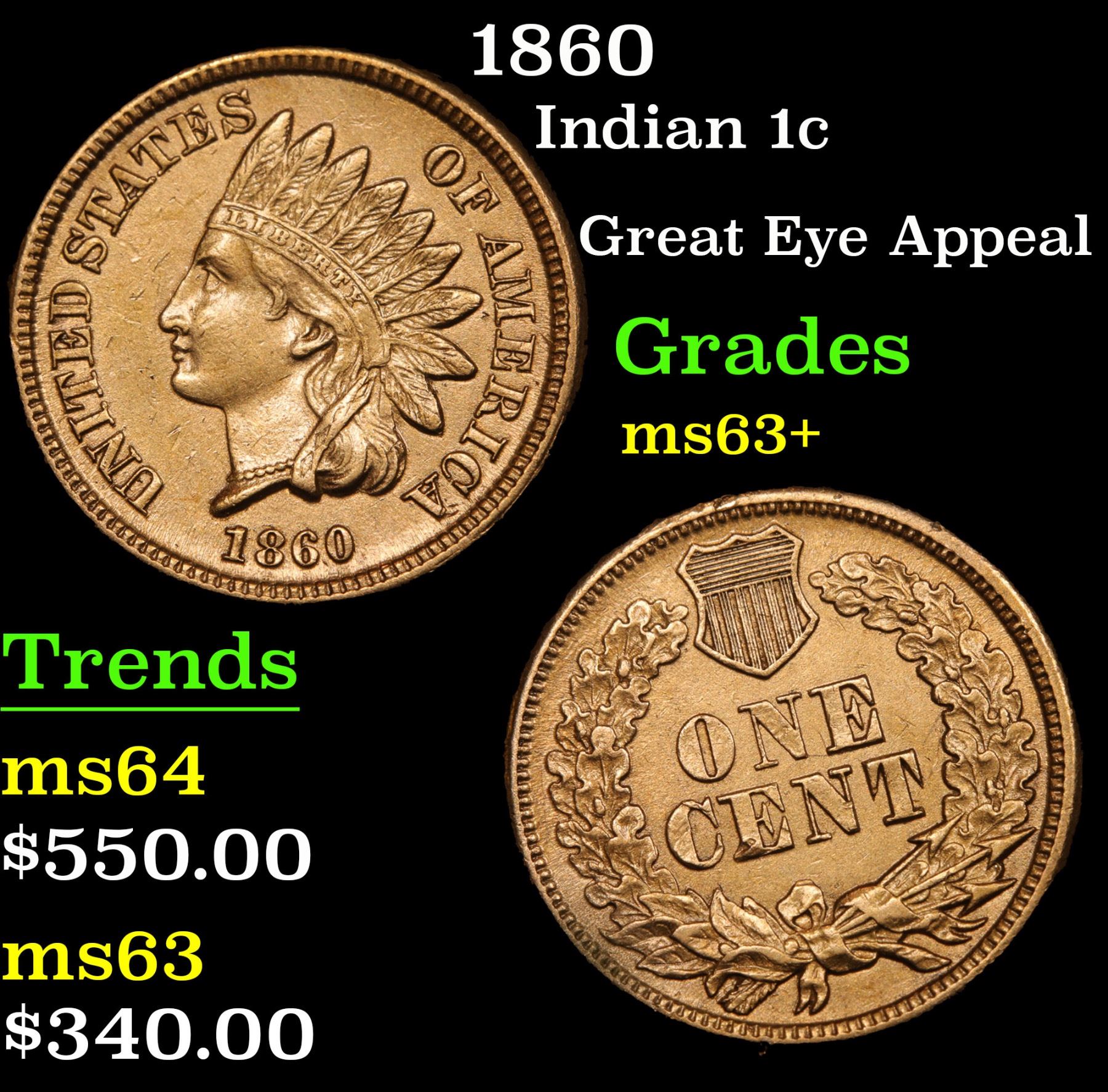 1860 Indian Cent 1c Grades Select+ Unc.  Great Eye Appeal