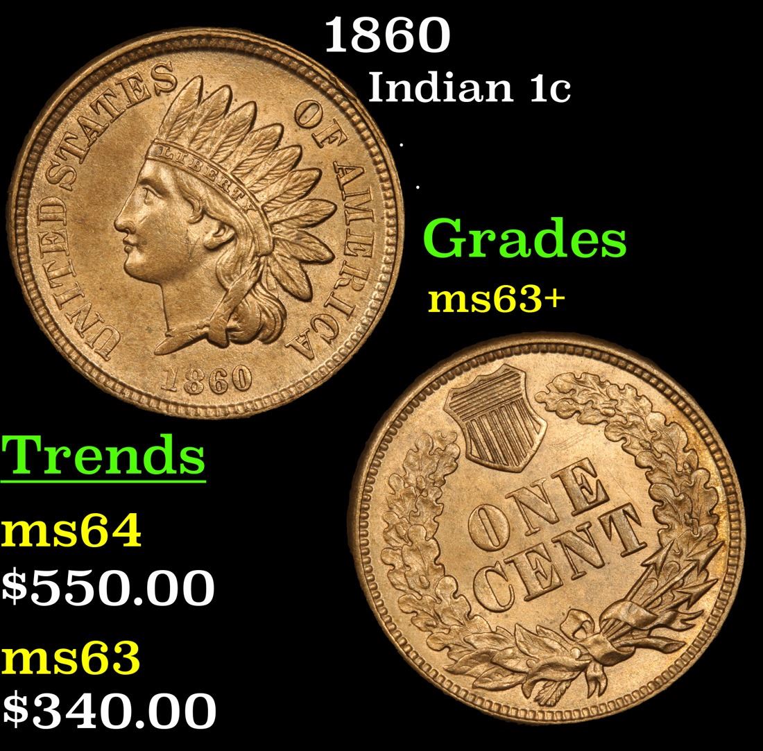 1860 . . Indian Cent 1c Grades Select+ Unc.