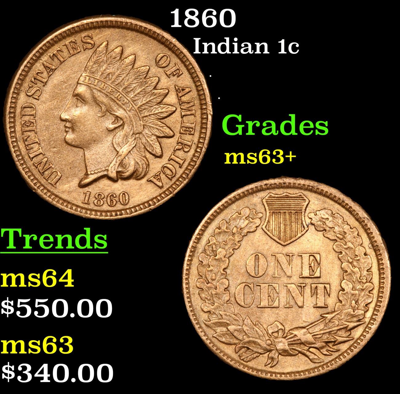 1860 . . Indian Cent 1c Grades Select+ Unc.