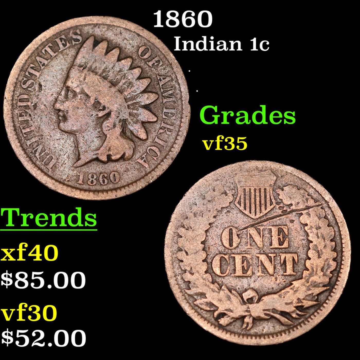 1860 Indian Cent 1c Grades vf++.