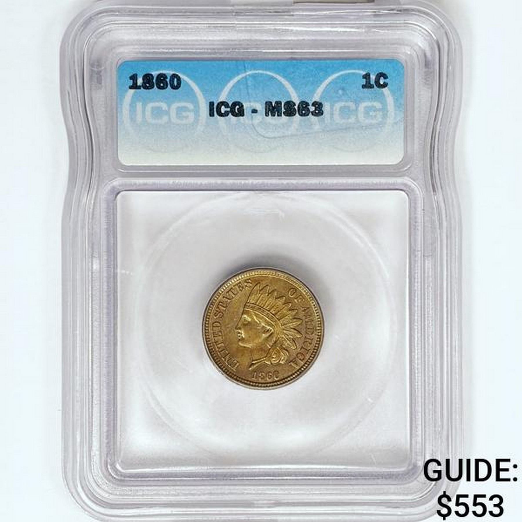 1860 Indian Head Cent ICG MS63