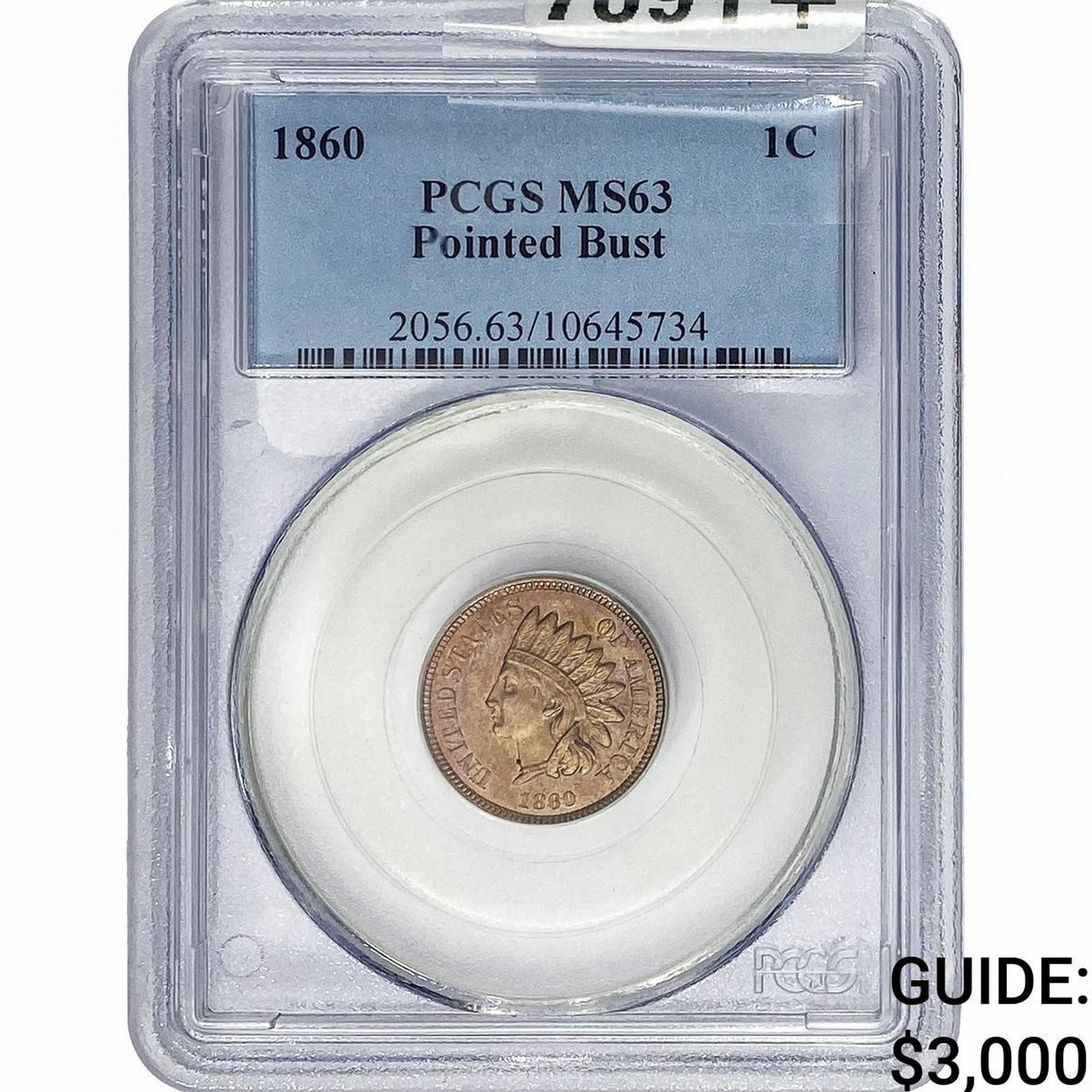 1860 Indian Head Cent PCGS MS63 Pointed Bust