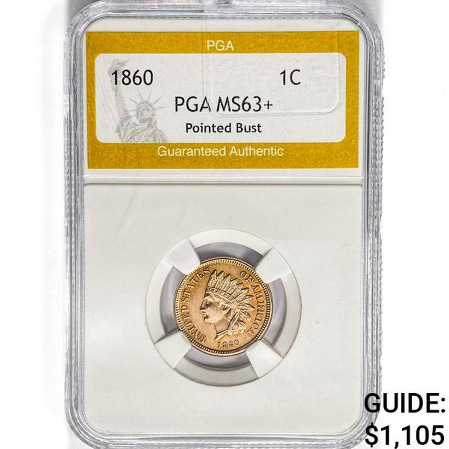 1860 Indian Head Cent PGA MS63+ Pointed Bust