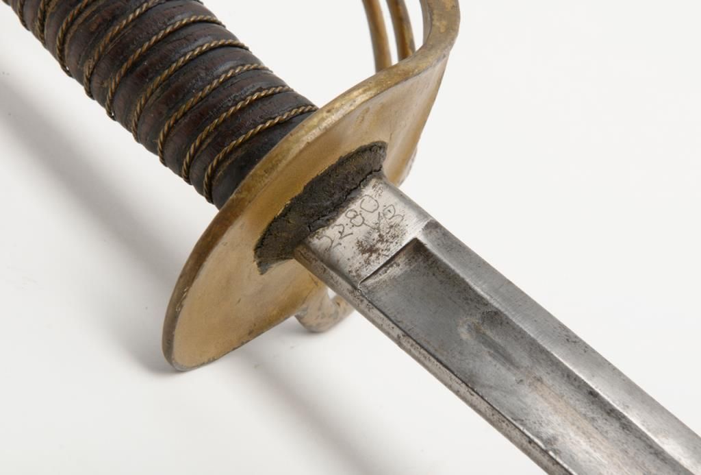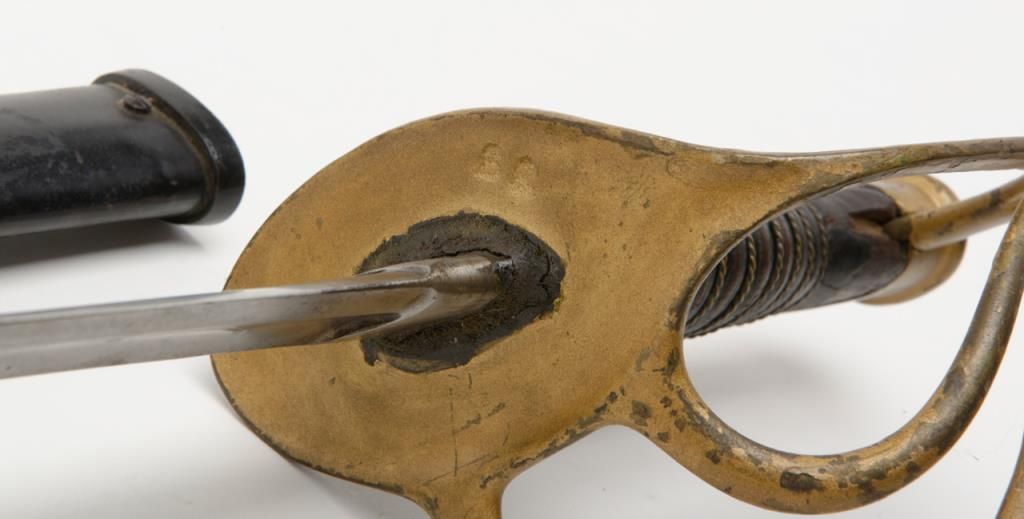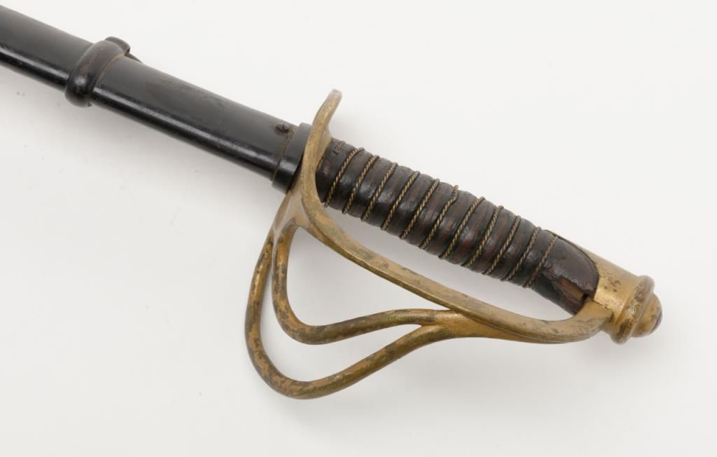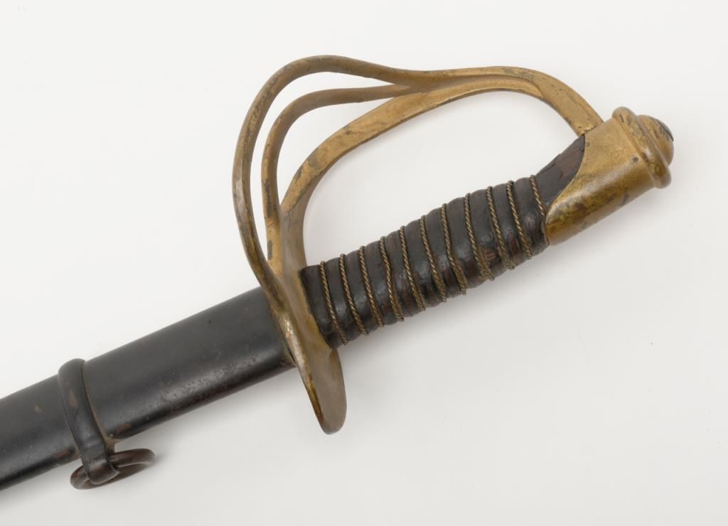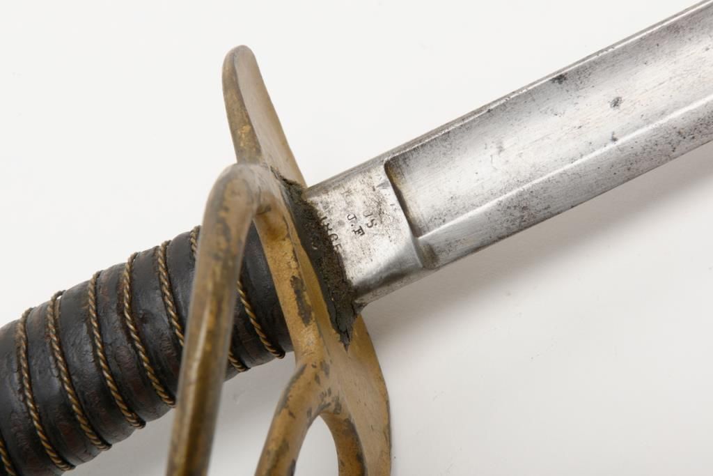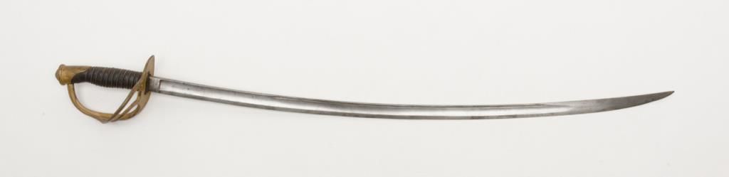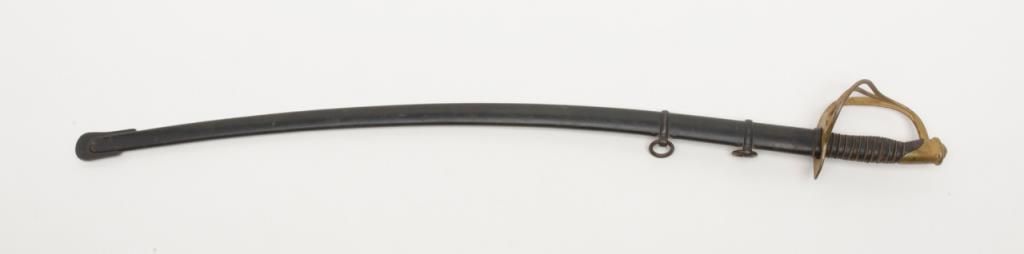 1860 Model U.S. Cavalry saber showing U.S. inspections and dated 1865 in very good condition with original scabbard. The ricasso is scratched engraved with the number “2280 Y 13”. This sword was carried at San Juan Hill in theSpanish-American war and was given to William A. Gary in 1940 by 1st Sgt. William Foster U.S. Army retired. Sgt. Foster was wounded at the battle of San Juan Hill and this was his sword gifted to noted collector and author Bill Gary. It was oneof his most prized possessions and Mr. Bill Gary treasured it as a personal memento gifted between two soldiers. The Inventory card from The Gary collection is included. The sword remains in very good condition and shows an old black paint on the scabbard and old yellow paint on the hilt. Additionally the pommel is stamped “75” and the guard ”63” in large handheld dye style stamps. The wire wrapped grip is good. The blade is very good plus with good markings and some slight scratches with normal use. William A. Gary collection consigned by his estate. Est.: $400-$800