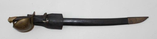 1860 Navy Cutlass by Ames dated 1862, reproduction scabbard; blade marked 10H over 103 on thumb area; markings light; good to very good overall with good wrap and minor dings. From an old collection in Auburn, CAin the heart of the Gold Country. Est.: $400-$800.