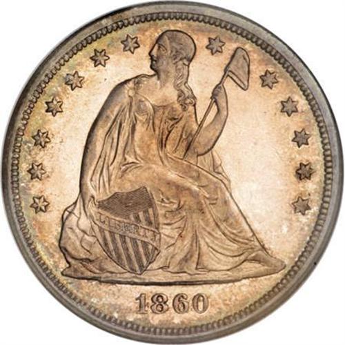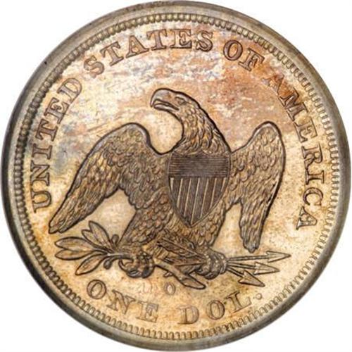 <B>1860-O $1 MS64 NGC.</B></I> Attractive orange-gold patina on the obverse displays bluish accents at the peripheries, while the reverse displays a mix of orange-gold, sky-blue, and light tan. The only exception to the generally well struck design elements is softness in the hair at the top of Liberty's head and on the stars along the right border. A few minor ticks preclude full Gem classification. Census: 22 in 64, 13 finer (2/08).<BR><I>From The Queller Family Collection of Silver Dollars.</B></I><BR><BR><B>Coin Engraver:</B> Christian Gobrecht<BR><BR><b>Shipping:</b> Coins & Currency (<a target="_blank" href="http://www.heritageauctions.com/common/shipping.php">view shipping information</a>)