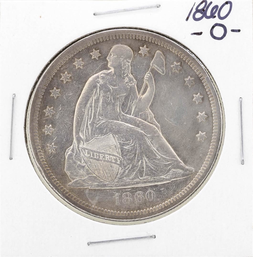One 1860-O $1 Seated Liberty Silver Dollar Coin.