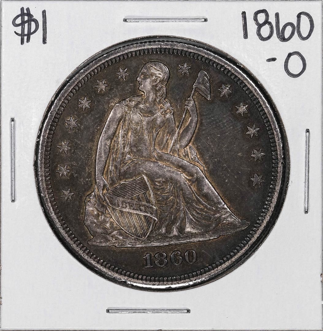 One 1860-O $1 Seated Liberty Silver Dollar Coin.