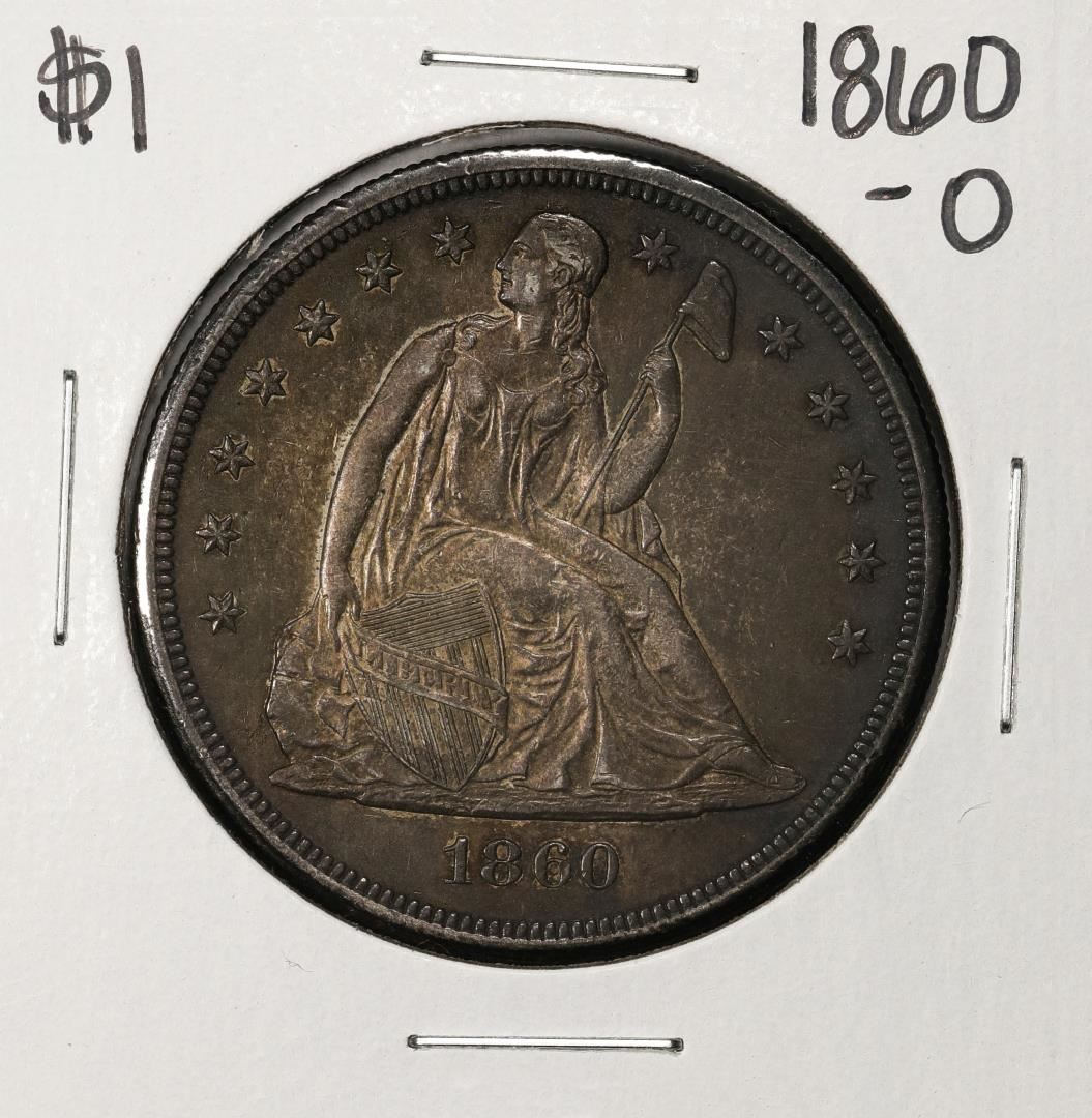 One 1860-O $1 Seated Liberty Silver Dollar Coin.