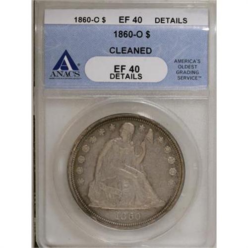 <B>1860-O $1 --Cleaned--ANACS. XF40 Details.</B></I> NGC Census: (15/525). PCGS Population (29/836). Mintage: 515,000. Numismedia Wsl. Price for NGC/PCGS coin in XF40: $375. (#6950)<BR><BR><B>Coin Engraver:</B> Christian Gobrecht<BR><BR><b>Shipping:</b> Coins & Currency (<a target="_blank" href="http://www.heritageauctions.com/common/shipping.php">view shipping information</a>)