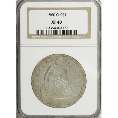 <B>1860-O $1 XF40 NGC.</B></I> NGC Census: (13/506). PCGS Population (21/805). Mintage: 515,000. Numismedia Wsl. Price: $333. (#6950)<BR><BR><b>Shipping:</b> Coins & Currency (<a target="_blank" href="http://www.heritageauctions.com/common/shipping.php">view shipping information</a>)