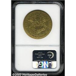 1860-O $20 AU50 NGC. Produced in limited numbers (6,600 pieces), the 1860-O falls into the top 10% of the Liberty double eagle series in terms of both overall and condition rarity. Winter ranks this issue as the fourth rarest double eagle emission from the New Orleans Mint and, with an estimated population of 60-65 survivors, we would have to agree. This lot offers a coveted About Uncirculated 50 representative. Both sides are bright at most angles and the color oscillates between yellow-gold and sandy-tan shades as the coin rotates beneath a light. Suitably defined for the issue with light wear across the highpoints. One noticeable mark is seen from the base of Liberty's bust to the 6 of the date, and this can be used as a future identifier. A PCGS flip is also included. Important notice: Heritage usually auctions material at the rate of 200-250 lots per hour. On some occasions eBay Live bid software or the Internet may not be able to keep up with the pace of the auction. We recommend placing a realistic absentee bid now as insurance to avoid disappointment. Occasionally the auctioneer may eliminate or reject an eBay Live bid, and the auctioneer may also reopen a lot after the close of the eBay live bidding (usually because we missed an audience bid), and may reject your bid even if it shows you as the winning bidder. By bidding via eBay Live, you agree that Heritage may award the lot to another bidder at its sole discretion under the circumstances described above or any other reasonable circumstances. Also please note that all Heritage lots purchased through eBay Live carry a 20% Buyer's Premium. Please make sure you read the Terms and Conditions before you bid.