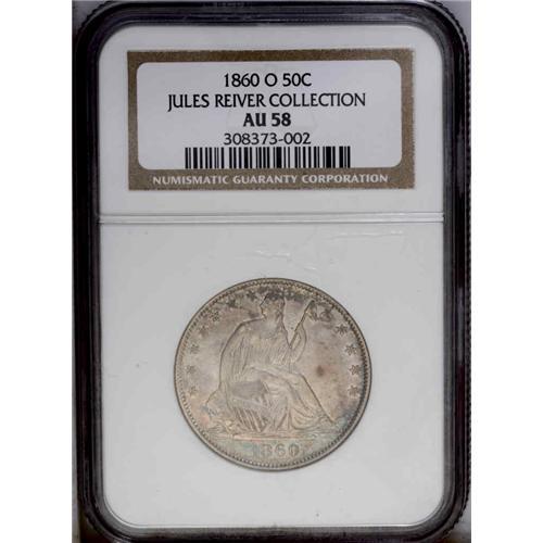 1860-O 50C AU58 NGC. A lustrous, sharply struck half w 1860-O[50C] AU58 NGC.
