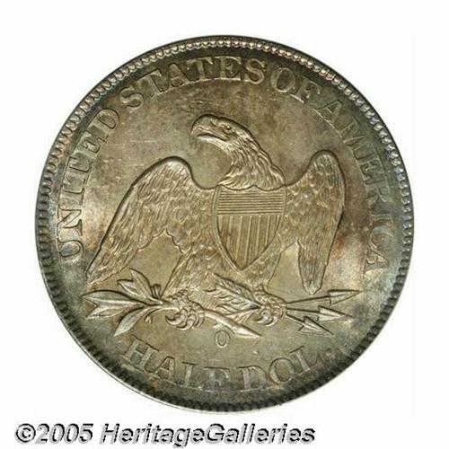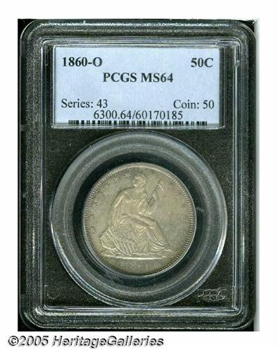 <B>1860-O<50C> MS64 PCGS.</B></I> Workers at the New Orleans Mint produced 1,290,000 half dollars in 1860, just prior to the start of the Civil War. Of course, at the time they couldn't be aware of the events to follow a year later, as the Mint was seized by the Confederacy. Although not quite Gem quality, this example is a splendid representative of the issue with satiny luster beneath attractive golden-brown and iridescent toning. Both sides have sharp central details with somewhat weakened peripheral elements, with the stars to the right especially weak. A scarce variety that is elusive in Gem or Near-Gem condition. Population: 23 in 64, 18 finer (5/05).