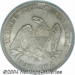 <table><tr><td><TABLE cellSpacing=0 cellPadding=0 width="100%" bgColor=#000000 border=0><TBODY> <TR><TD width="100%"><TABLE cellSpacing=1 cellPadding=3 width="100%" border=0><TBODY><TR><TD width="100%" bgColor=#79735c><FONT face=arial color=#ffffff size=3><B>Description</B> </FONT></TD></TR><TR><TD width="100%" bgColor=#ffffff><FONT face=arial size=2><B>1860-O 50C MS65 PCGS.</B></I> Tail Hub Variety Two. WB-103. There is a sizeable amount of space between the tops of the LF in HALF, this feature confirming the attribution of the hub variety. As an issue, the 1860-O (1.2 million pieces produced) is not particularly rare in Mint State. (Wiley and Bugert, 1993, assign the date a Low R.4 rating in all MS grades.) In Gem, however, the '60-O is conditionally rare. This is an originally toned survivor whose otherwise antique-copper overtones yield to rose-gray tinting throughout much of the reverse field. Both sides are appreciably sharp in strike, although we do note a little softness of detail over some of the obverse star centrils. Solidly graded with only a few scattered abrasions that are well concealed by the toning. Population: 13 in 65, 5 finer (10/03).<BR><I>From the Fred Miller Collection.</B></I> </FONT></TD></TR></TBODY></TABLE></TD></TR></TBODY></TABLE><BR><A name=PricesRealized></A><TABLE cellSpacing=0 cellPadding=0 width="100%" bgColor=#000000 border=0><TBODY><TR><TD width="100%"><TABLE cellSpacing=1 cellPadding=3 width="100%" border=0><TBODY><TR><TD width="100%" bgColor=#79735c><A name=PR><FONT face=arial color=#ffffff size=3><B>Previous Prices from Heritage Auctions</B> </FONT></A></TD></TR><TR><TD bgColor=#f6f6ed><TABLE cellSpacing=0 cellPadding=0 width="100%" border=1><TBODY><TR><TD align=middle width="33%"><B>Date</B></TD><TD align=middle width="33%"><B>Service</B></TD><TD align=middle width="33%"><B>Price</B></TD></TR><TR bgColor=whitesmoke><TD width="33%"><B>01/08/1999</B></TD><TD width="33%">NGC</TD><TD width="33%">$3,105.00</TD></TR><TR bgColor=whitesmoke><TD width="33%"><B>01/01/1999</B></TD><TD width="33%">PCGS</TD><TD width="33%">$6,900.00</TD></TR></TBODY></TABLE></TD></TR><TR><TD bgColor=#ffffff><FONT face=arial size=1 ?>PLEASE NOTE: All prices realized reflect the final hammer price PLUS the buyer's premium in auctions that charge a buyer's premium. Each item has a notation at the top of the listing indicating whether that lot included a buyer's premium. Example: A item that sells with a final hammer price of $100 and a 20% buyer's premium will display with a price realized of $120. All information listed is intended to be as accurate as possible, but errors are possible. Please use this guide carefully and inform us of any inaccuracies. </FONT></TD></TR></TBODY></TABLE></TD></TR></TBODY></TABLE><BR><TABLE cellSpacing=0 cellPadding=0 width="100%" bgColor=#000000 border=0><TBODY><TR><TD width="100%"><TABLE cellSpacing=1 cellPadding=3 width="100%" border=0><TBODY><TR><TD width="100%" bgColor=#79735c colSpan=6><FONT face=arial color=#ffffff size=3><B>Price Guide*</B> </FONT></TD></TR><TR bgColor=#f6f6ed><TD align=middle><B>Grade</B> </TD><TD align=middle><B>Coin World<BR>(Trends)</B> </TD><TD align=middle><B>Numismedia<BR>Retail</B> </TD><TD align=middle><B>Numismedia<BR>Wholesale</B> </TD><TD align=middle><B>Coin<BR>Universe</B> </TD><TD align=middle><B>Heritage<BR>Value Index</B> </TD></TR><TR bgColor=#ffffff><TD align=middle>64</TD><TD align=right>$2,500.00</TD><TD align=right>---</TD><TD align=right>$1,725.00</TD><TD align=right>$2,250.00</TD><TD align=right>$1,521.00</TD></TR><TR style="FONT-WEIGHT: bold" bgColor=#cccfdd><TD align=middle>65</TD><TD align=right>$5,500.00</TD><TD align=right>---</TD><TD align=right>$3,950.00</TD><TD align=right>$6,500.00</TD><TD align=right>$4,000.00</TD></TR><TR bgColor=#ffffff><TD align=middle>66</TD><TD align=right>---</TD><TD align=right>---</TD><TD align=right>$8,550.00</TD><TD align=right>$12,500.00</TD><TD align=right>$8,750.00</TD></TR><TR bgColor=#ffffff><TD colSpan=6><FONT size=1>*All information listed is intended to be as accurate as possible, but errors are possible. No item may be returned or refused based on this information which is provided as a service to our customers. You should contact each pricing source directly to determine the accuracy of this information. </FONT></TD></TR></TBODY></TABLE></TD></TR></TBODY></TABLE><BR><TABLE cellSpacing=0 cellPadding=0 width="100%" bgColor=#000000 border=0><TBODY><TR><TD width="100%"><TABLE cellSpacing=1 cellPadding=3 width="100%" border=0><TBODY><TR><TD width="100%" bgColor=#79735c><FONT face=arial color=#ffffff size=3><B>Population Guide</B> </FONT></TD></TR><TR bgColor=#ffffff><TD align=middle><!-- Begin Output of Population Grid--><TABLE cellSpacing=0 cellPadding=0 width="100%" border=0><TBODY><TR><TD vAlign=center><TABLE cellSpacing=0 width="100%" border=1 cellsadding="3"><TBODY><TR><TD vAlign=center><TABLE cellSpacing=0 cellPadding=3 width="100%" border=1><TBODY><TR><TD vAlign=center align=middle bgColor=#f0f1e8 colSpan=2 <CENTER><FONT face=Arial size=2><B>PCGS Pop </B></FONT><CENTER></CENTER></TD><TD vAlign=center align=middle bgColor=#f0f1e8 colSpan=2><CENTER><FONT face=Arial size=2><B>NGC Pop</B></CENTER></FONT></TD></TR><TR><TD vAlign=center><FONT face=Arial size=2>(65)</FONT> </TD><TD vAlign=center align=right><FONT face=Arial size=2>13</FONT> </TD><TD vAlign=center><FONT face=Arial size=2>(65)</FONT> </TD><TD vAlign=center align=right><FONT face=Arial size=2>11</FONT> </TD></TR><TR><TD vAlign=center><FONT face=Arial size=2>(>65)</FONT> </TD><TD vAlign=center align=right><FONT face=Arial size=2>5</FONT> </TD><TD vAlign=center><FONT face=Arial size=2>(>65)</FONT> </TD><TD vAlign=center align=right><FONT face=Arial size=2>2</FONT> </TD></TR></TBODY></TABLE></TD></TR></TBODY></TABLE></TD></TR></TBODY></TABLE><!-- End Output of Population Grid--></TD></TR></TBODY></TABLE></TD></TR></TBODY></TABLE><BR><TABLE cellSpacing=0 cellPadding=0 width="100%" bgColor=#000000 bor