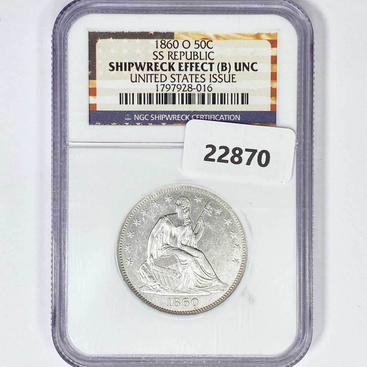 1860-O 50C Seated Lib. NGC Shipwreck Effect UNC