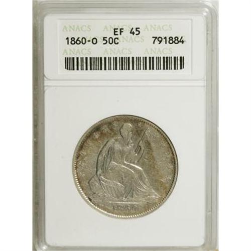 <B>1860-O 50C XF45 ANACS.</B></I> NGC Census: (8/148). PCGS Population (8/141). Mintage: 1,290,000. Numismedia Wsl. Price for NGC/PCGS coin in XF45: $137. (#6300)<BR><BR><B>Coin Engraver:</B> Christian Gobrecht<BR><BR><b>Shipping:</b> Coins & Currency (<a target="_blank" href="http://www.heritageauctions.com/common/shipping.php">view shipping information</a>)