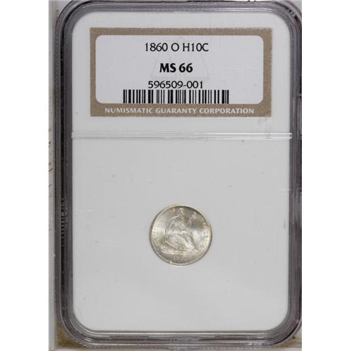 <B>1860-O H10C MS66 NGC.</B></I> Nicely struck with excellent luster and delicate golden-brown toning on each side. This piece is tied for the finest certified by NGC (9/06).<BR><BR><b>Shipping:</b> Coin/Currency (<a target="_blank" href="http://www.heritageauctions.com/common/shipping.php">view shipping information</a>)